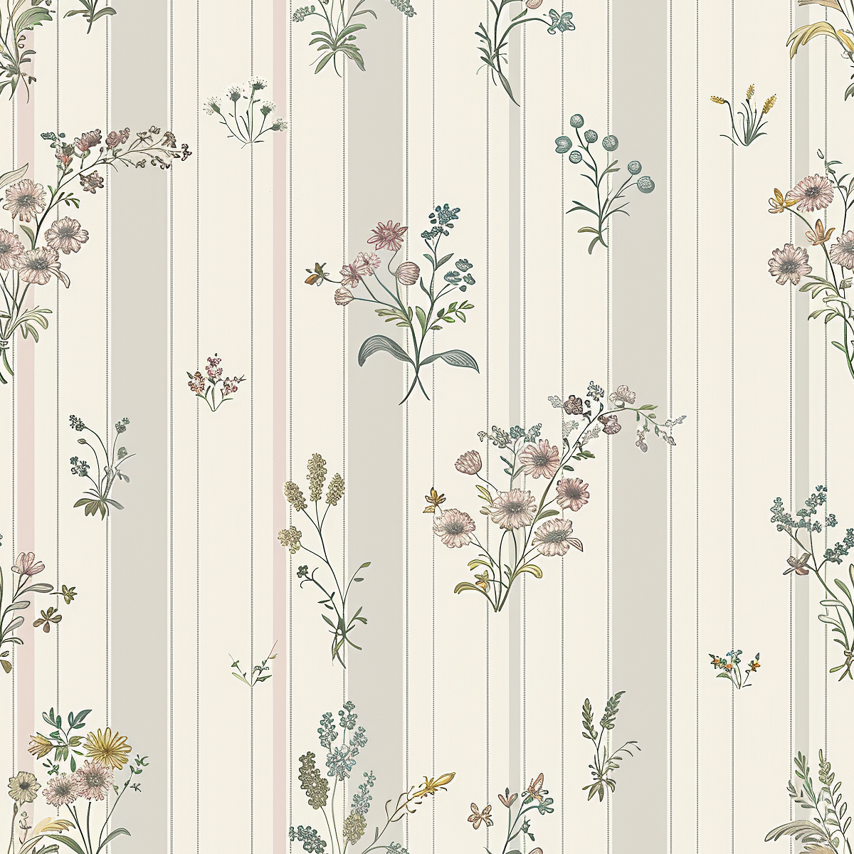 Wallpaper Flowers and Stripes - 2 rolls