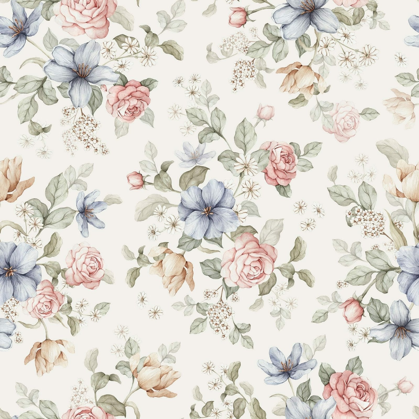 Flowers- Ecru - Wallpaper