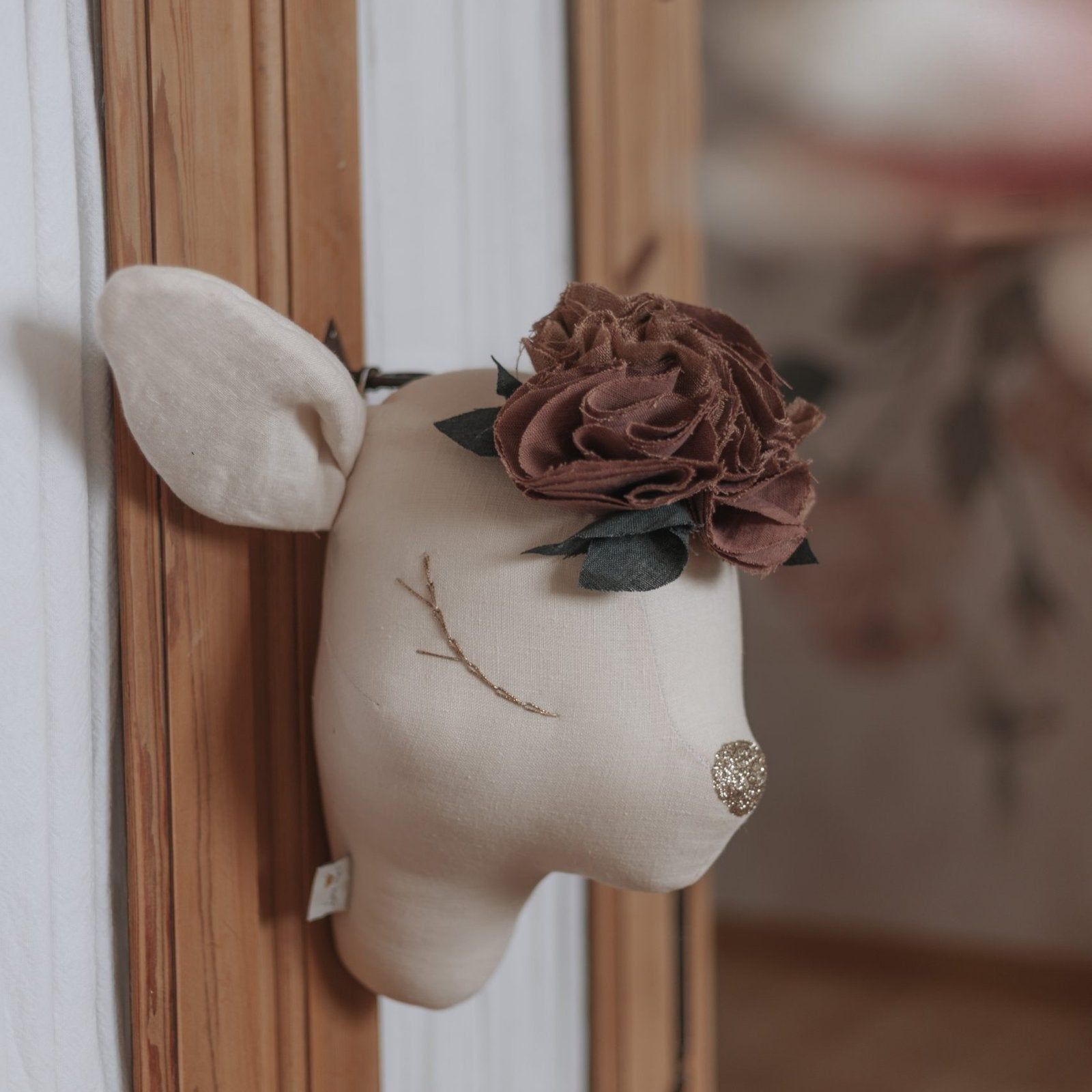 What a beauty, this linen deer with beautiful flowers! This deer is handmade with love, and it shows!