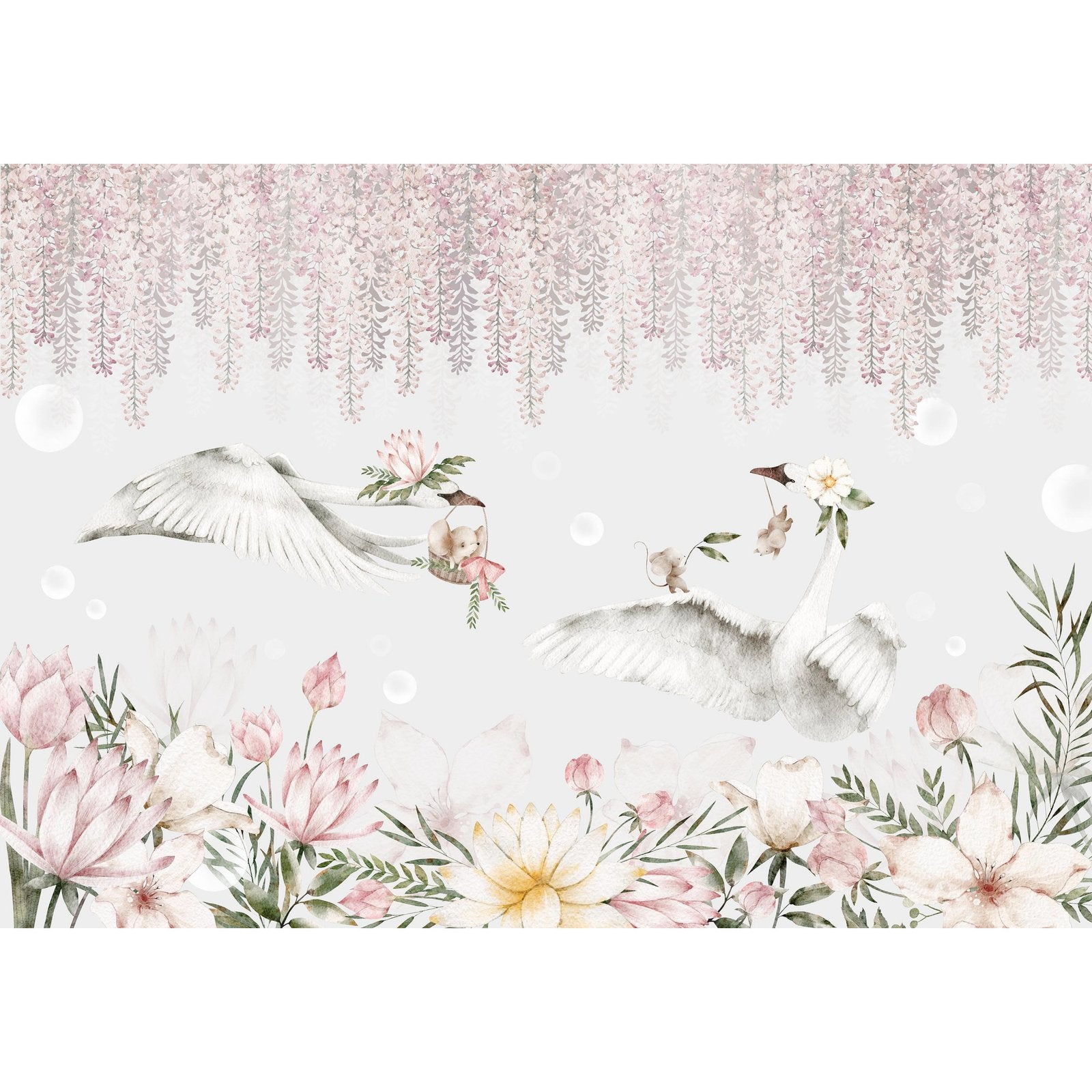 Beautiful swan wallpaper. Complete your dream room with this! This wallpaper is made from certified materials and printed with ecologically certified pigments. Order it by the square meter and it will be custom-made for you. You'll receive it in strips.
