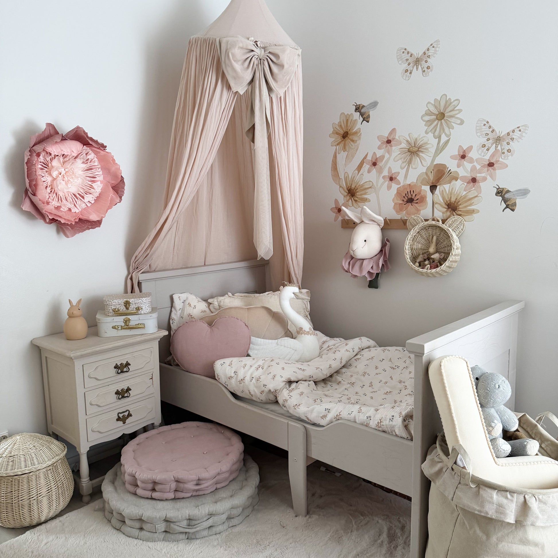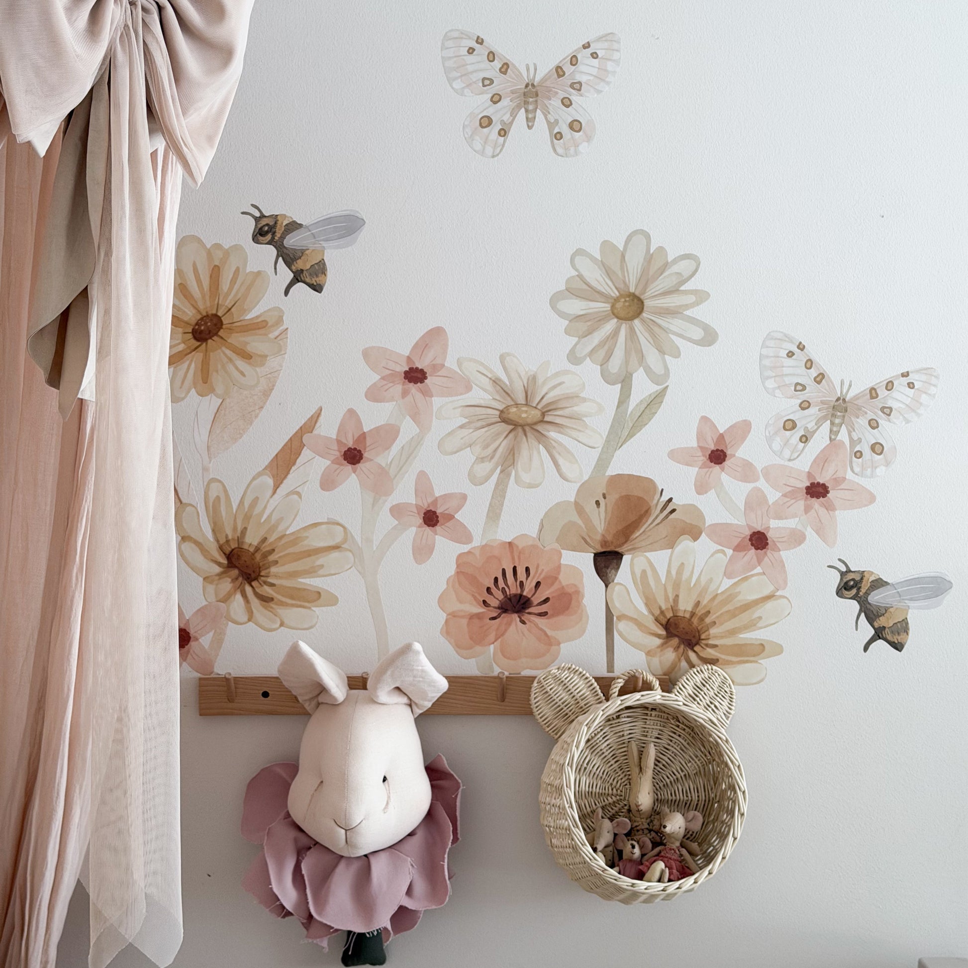 This sticker set featuring watercolor flowers, butterflies, and bees is a perfect choice for creating a natural and peaceful atmosphere in a child's room. It fits beautifully into both Scandinavian and boho interior styles.