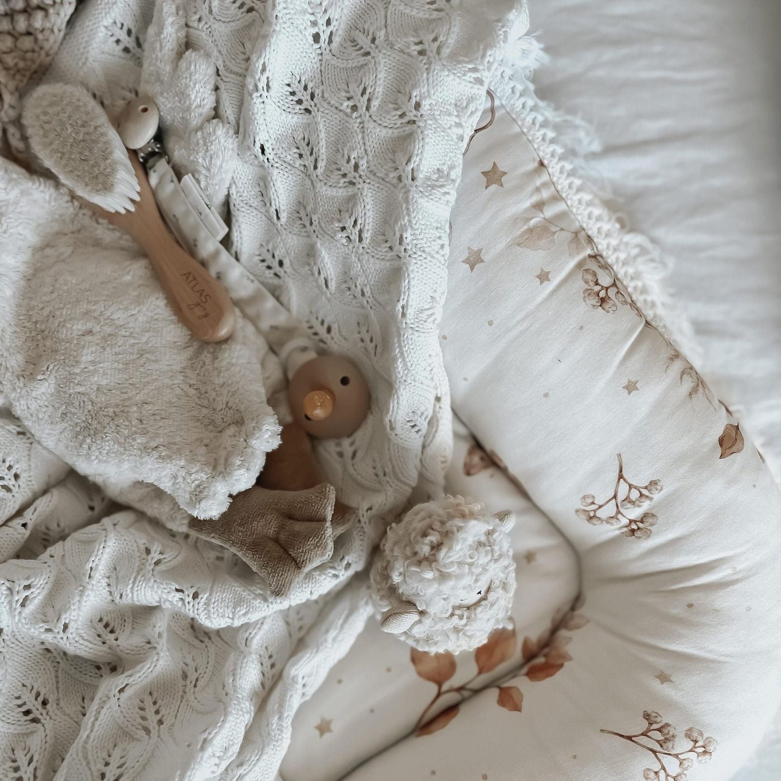 Dit lieve babynestje is niet alleen heel knus en comfortabel maar ook prachtig! Gemaakt van hoogwaardige katoen. Dit nestje kan gebruikt vanaf de geboorte tot ongeveer 6 maanden oud. En bovendien is dit nestje omkeerbaar! De mooie bloemen en vlinder print aan de ene kant en een neutrale beige kleur aan de andere kant. Zo kan jij zelf kiezen voor welk design je voorkeur gaat! Ook is dit babynestje afgezet met een mooie katoenen fringe. Je kan dit nestje gebruiken waar je maar wilt, als er maar een vlakke ondergrond is. Je kan deze bijvoorbeeld gebruiken in het wiegje of ledikant van je kleintje, maar ook in de box of op de grond. Wel altijd gebruiken onder toezicht! Combineer dit kussen met de bijpassende items uit The Butterfly collection om het geheel af te maken.