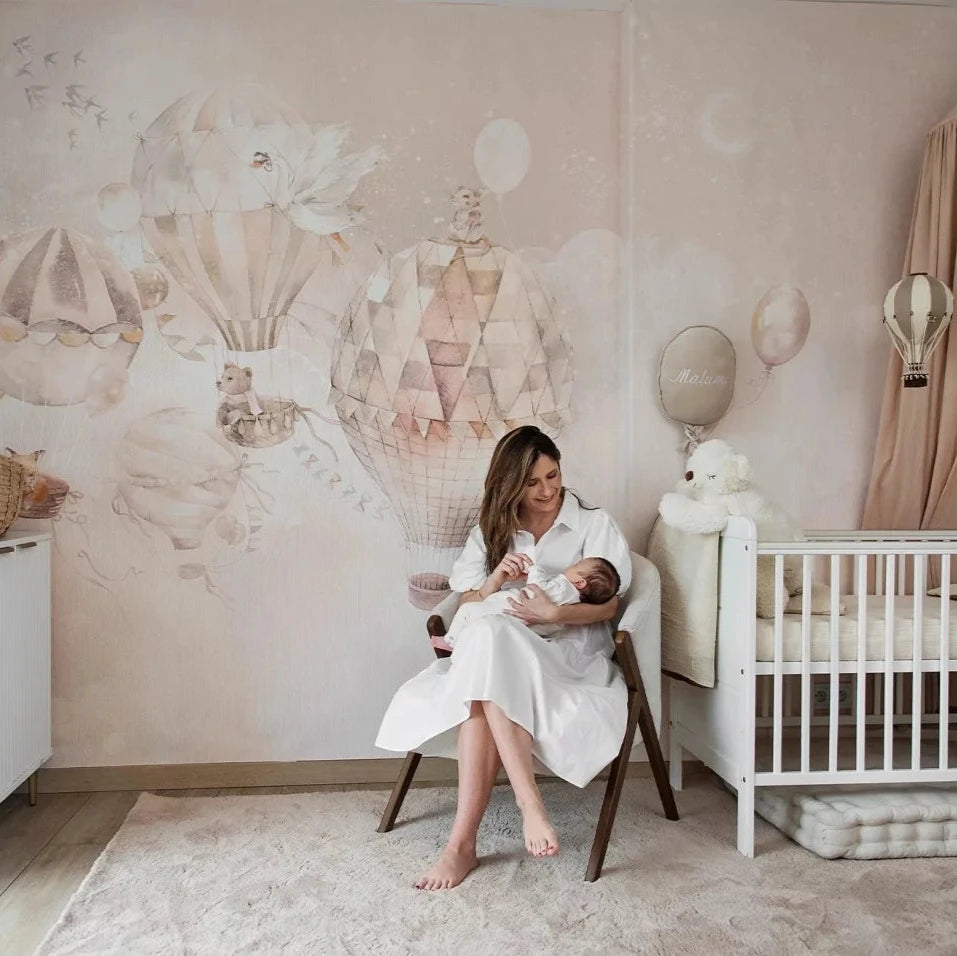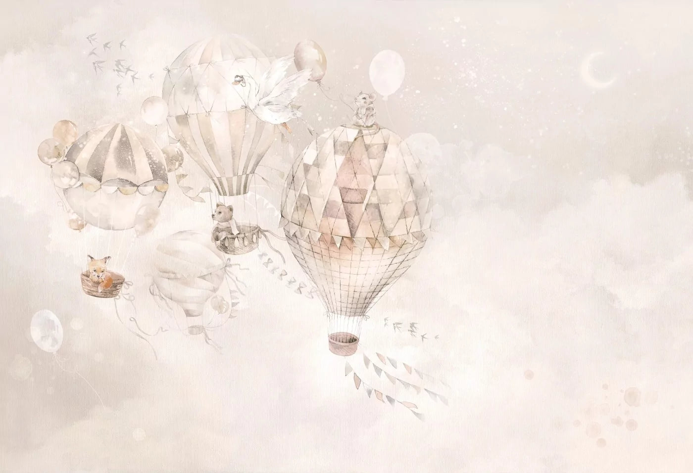 Creëer een dromerige sfeer in de kinderkamer met dit betoverende ballonnenbehang. Zachte tinten tonen vrolijke luchtballonnen met schattige diertjes die door de lucht zweven. Een speelse en lieve achtergrond voor dromen, spel en avonturen.