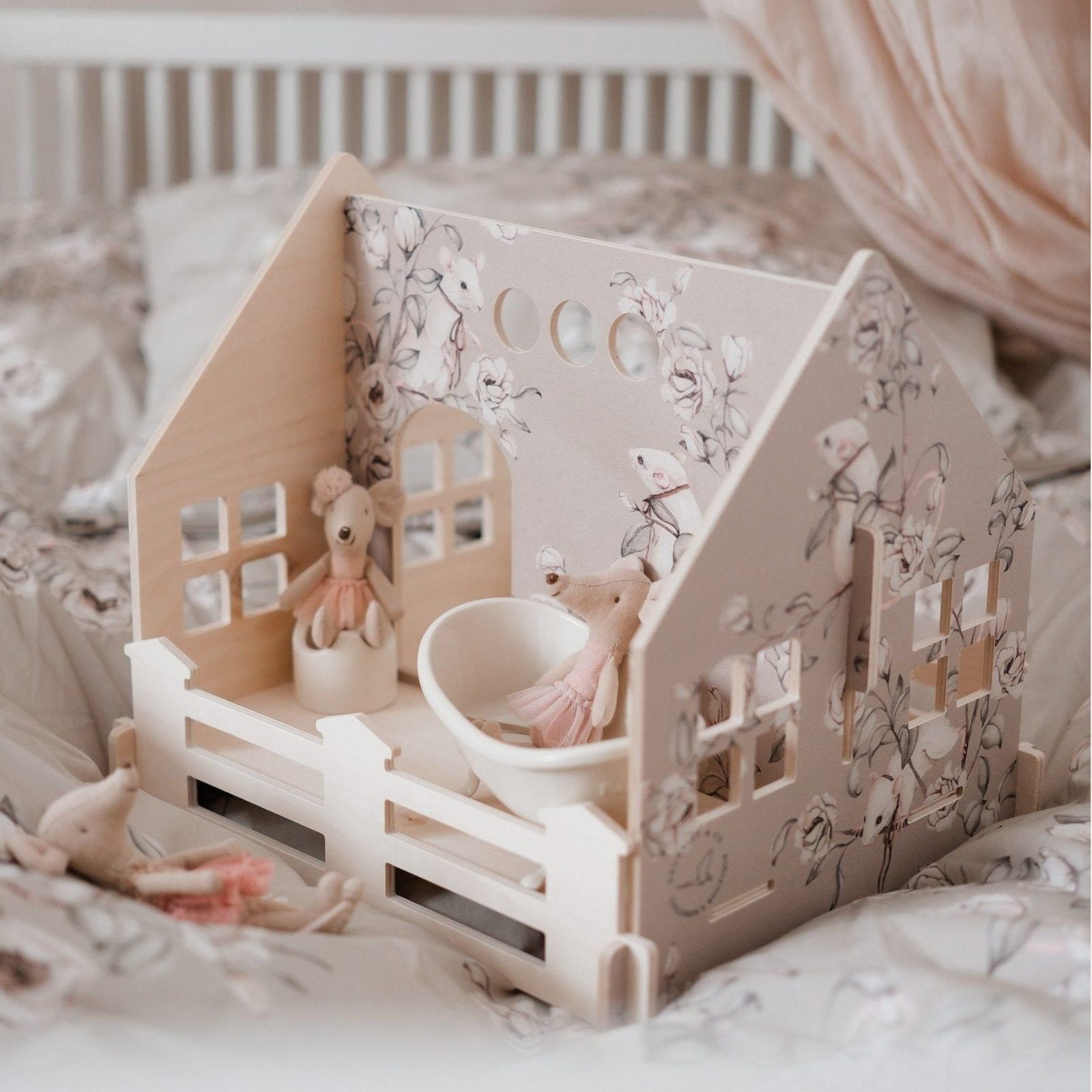 Basic Houten poppenhuis " Floral Mice" Taupe