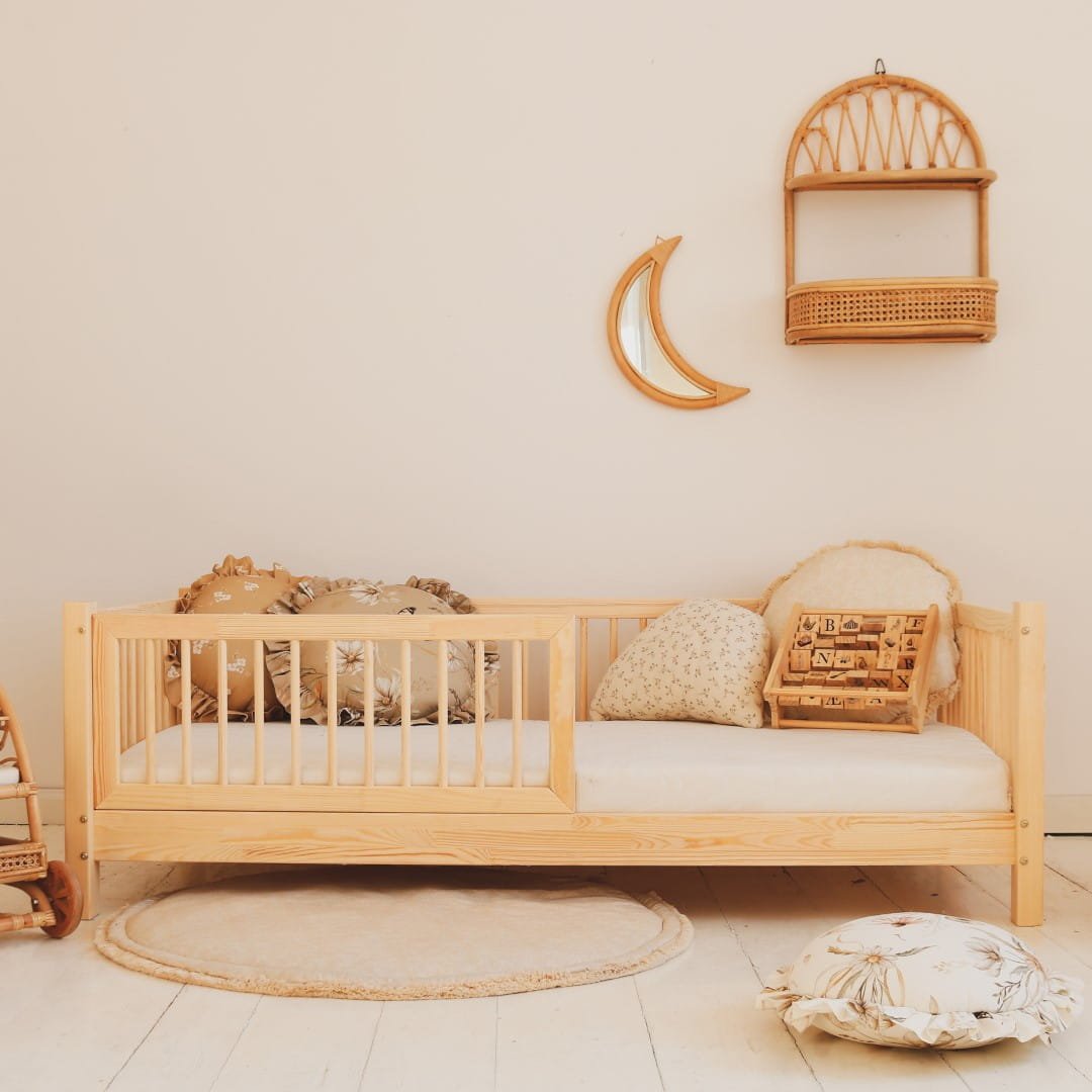 - Materiaal:De bedden zijn gemaakt van geselecteerd klasse 1 grenen multiplex.Gelijmd hout is duurzamer dan massief hout, het barst niet. Alle elementen zijn met de hand en mechanisch glad geslepen - de vormen zijn afgerond.