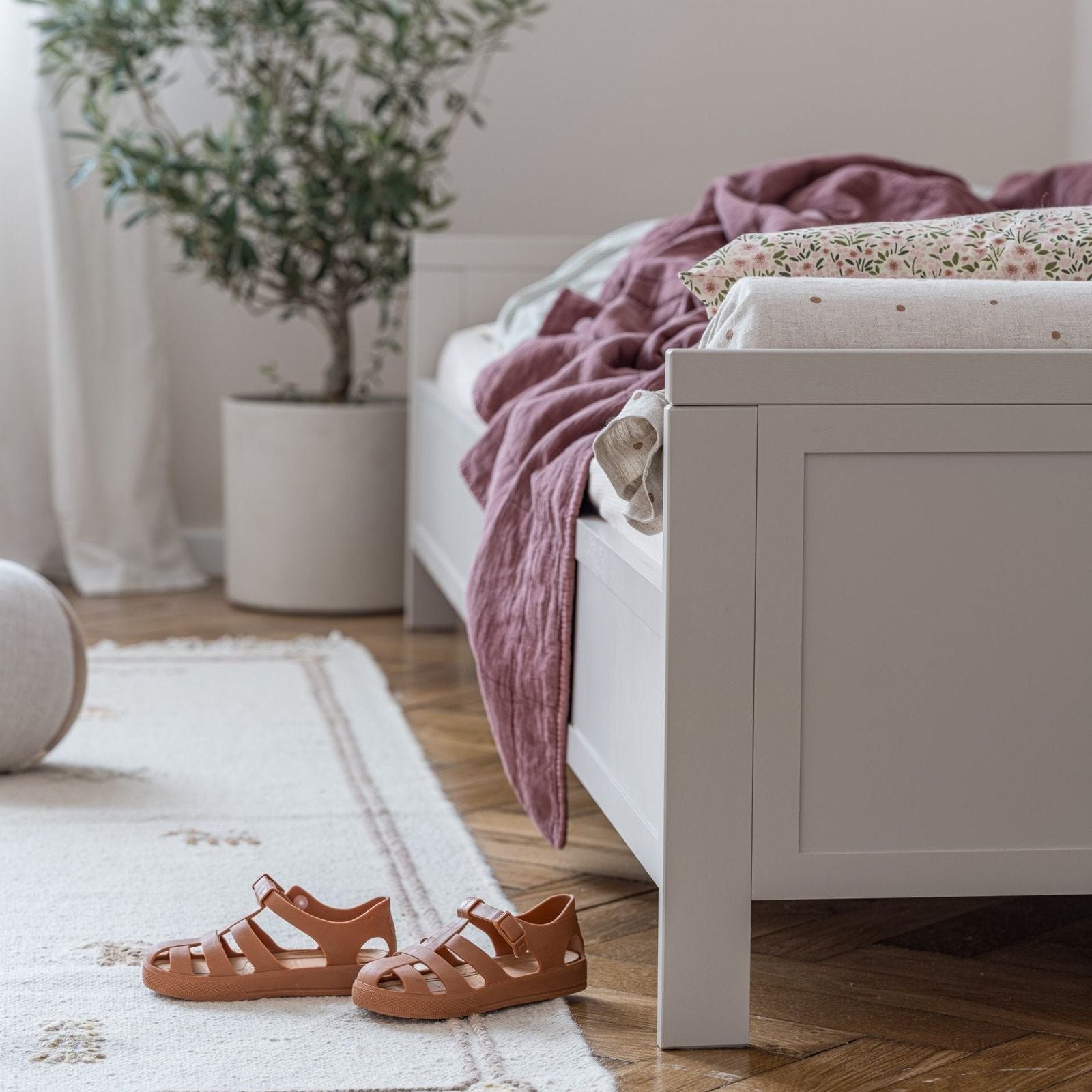 Zeer charmant kinderbed in fijne vintage stijl in de warme kleur grijs beige.Aanbevolen matras hoogte: 18-20 cm