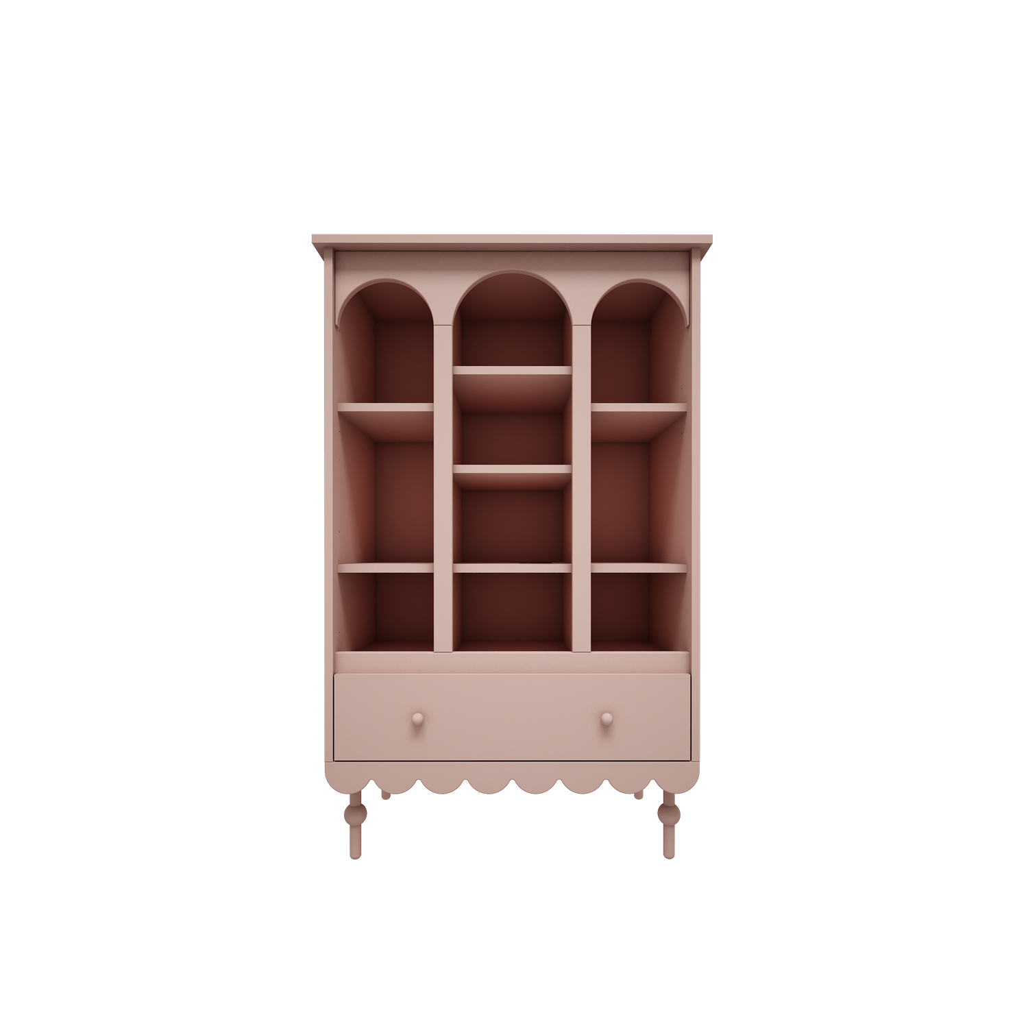 Zeer charmante boekenplank in retrostijl. Een ideale plek om boeken, spelletjes, puzzels op te slaan in de kinderkamer. De lade onderin de boekenplank is voorzien van de hoogwaardige zelfsluitende gidsen. Match met de bijpassende meubels uit de babushka lijn van Woodluck.