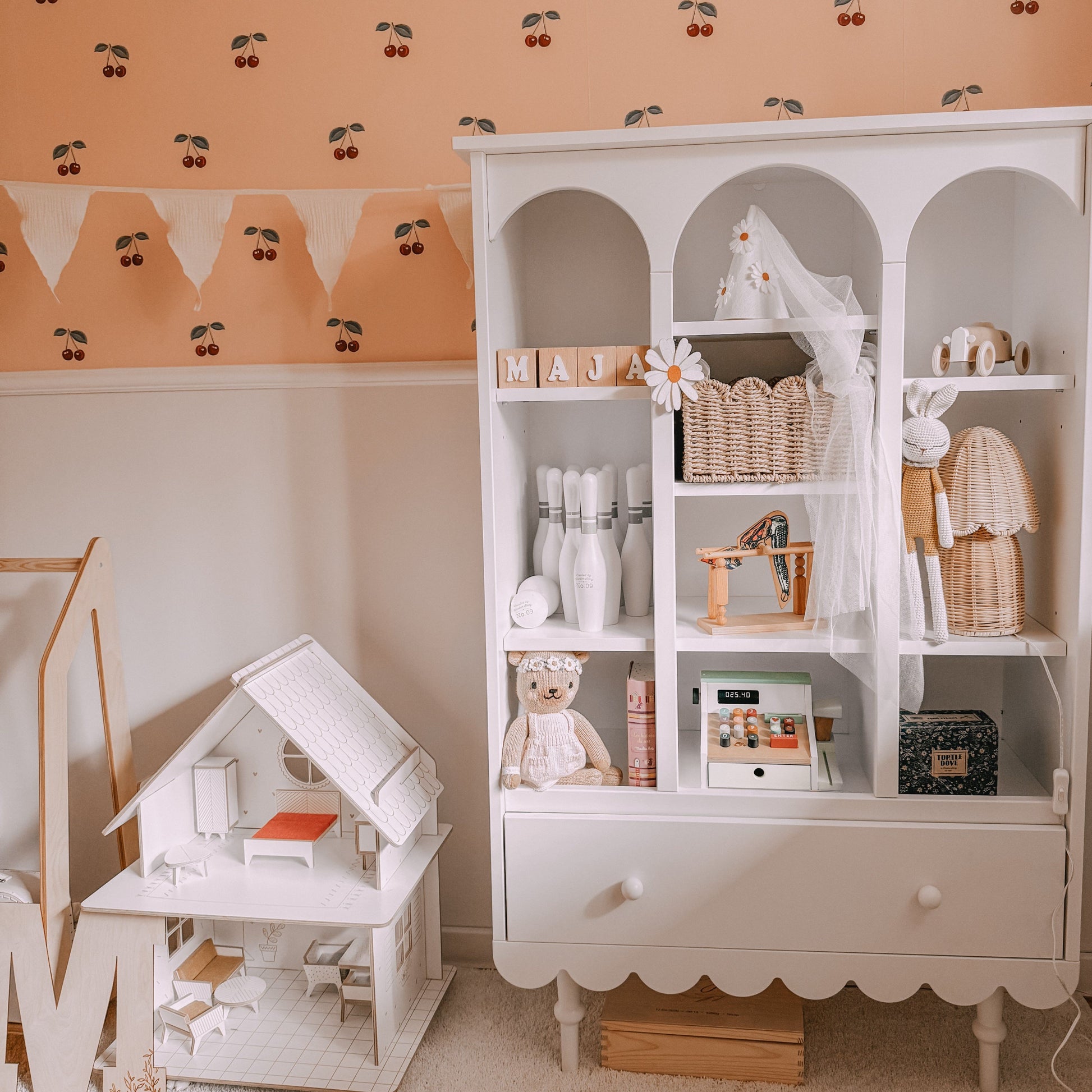 Zeer charmante boekenkast in retrostijl. Een ideale plek om boeken, spelletjes, puzzels op te slaan in de kinderkamer. De lade onderin de boekenplank is voorzien van de hoogwaardige zelfsluitende gidsen. Match met de bijpassende meubels uit de babushka lijn van Woodluck.
