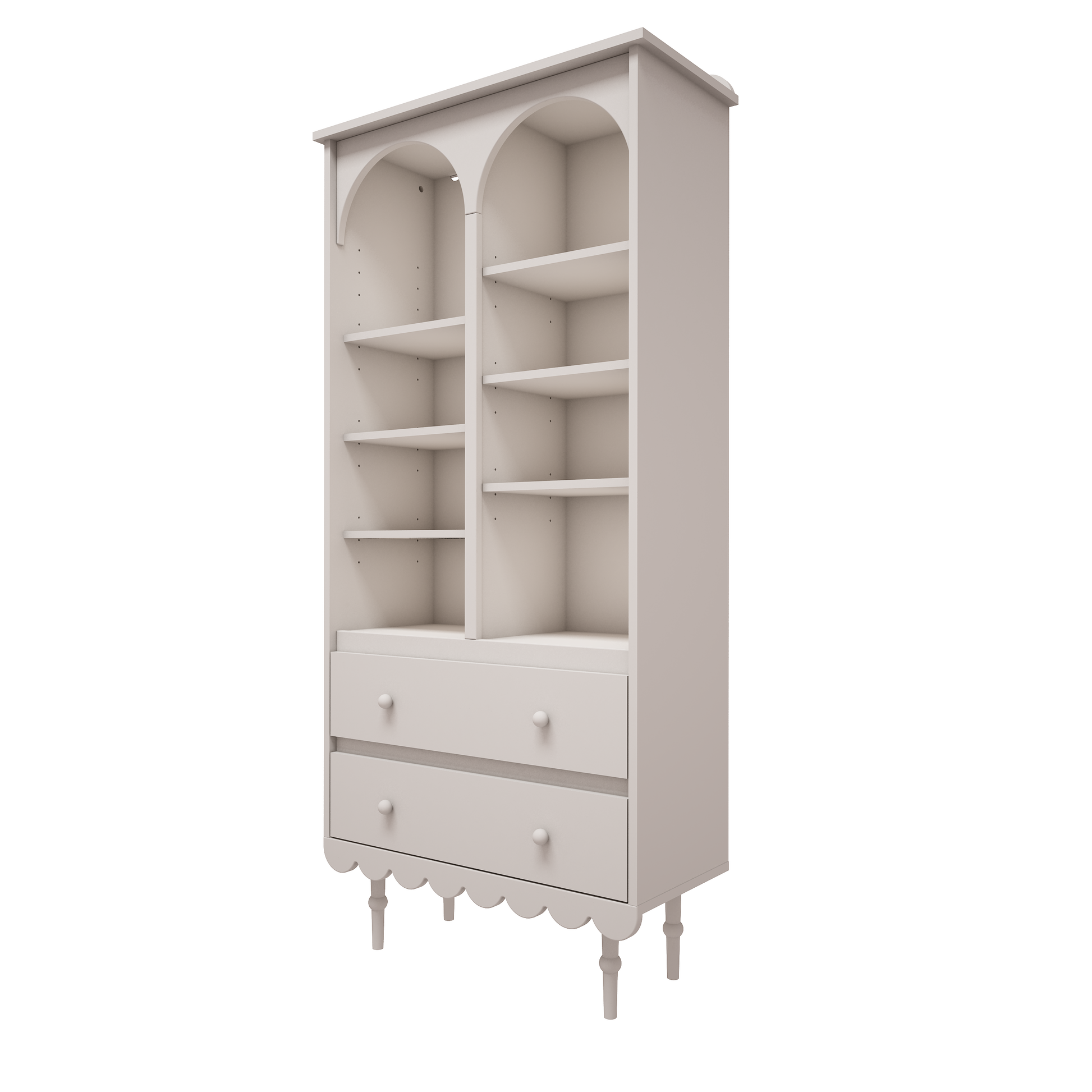 Een stijlvolle en praktische boekenplank die perfect past in elke kinderkamer. Deze prachtige kleur in combinatie met de speelse ruffle aan de onderzijde geeft de kast een unieke en charmante uitstraling. Ideaal voor het opbergen van boeken, speelgoed en andere spulletjes.