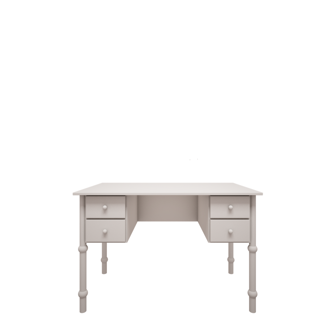Stijlvol bureau in retrostijl, met een elegante afwerking en subtiele details. Uitgerust met vier lades op zelfsluitende geleiders en verfijnde, ronde poten van massief beukenhout.