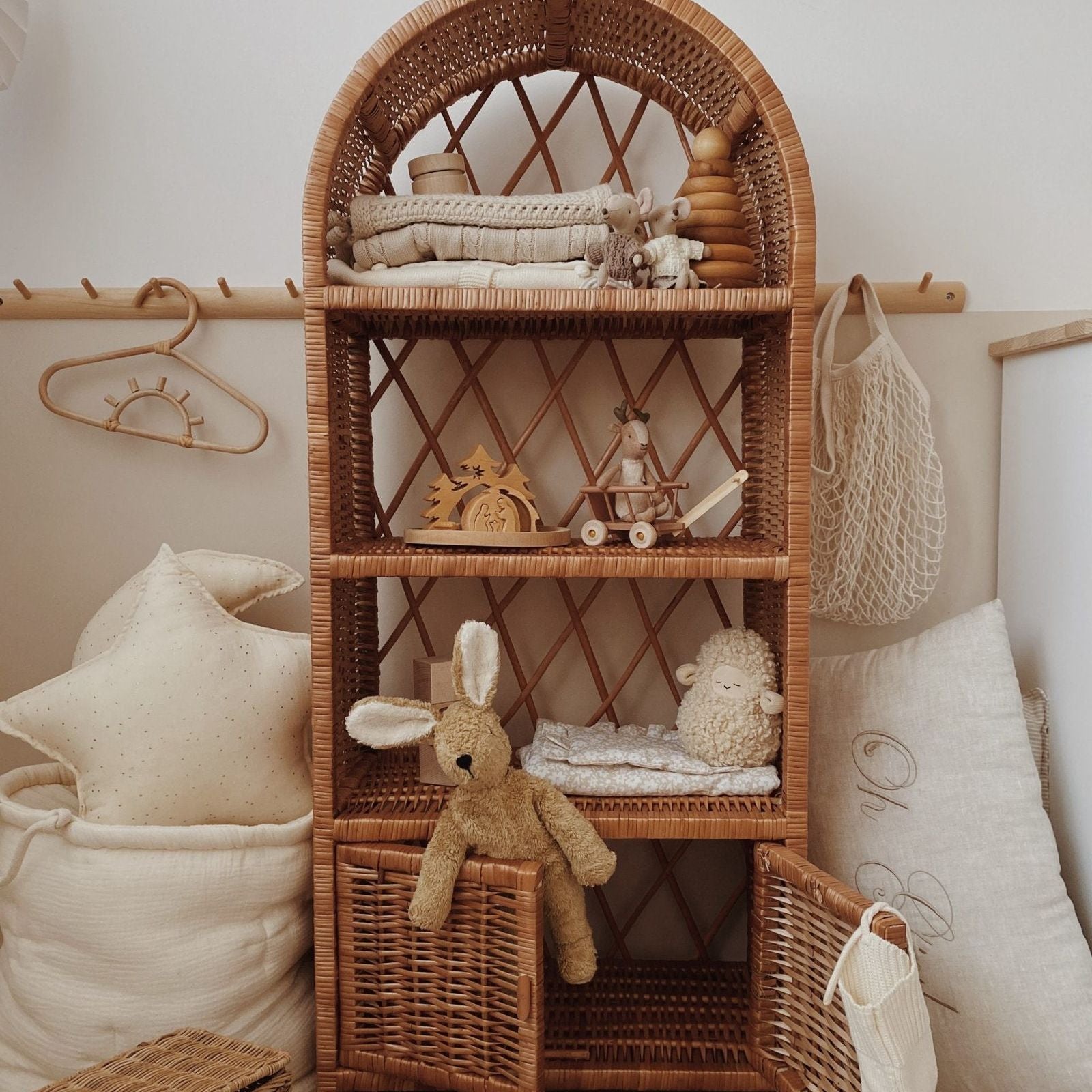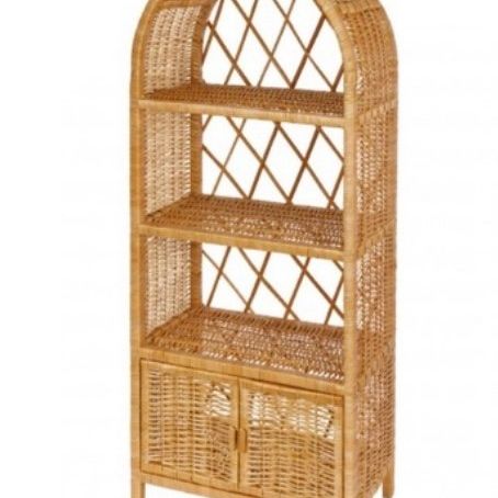 Prachtige ruime kast met genoeg opbergruimte. Deze kast is gemaakt van riet welke bevestigd is op hout.Een solide meubelstuk.Deze kast kan je gebruiken als boekenkast of als display voor alle alle mooie schatten van jouw kindje.