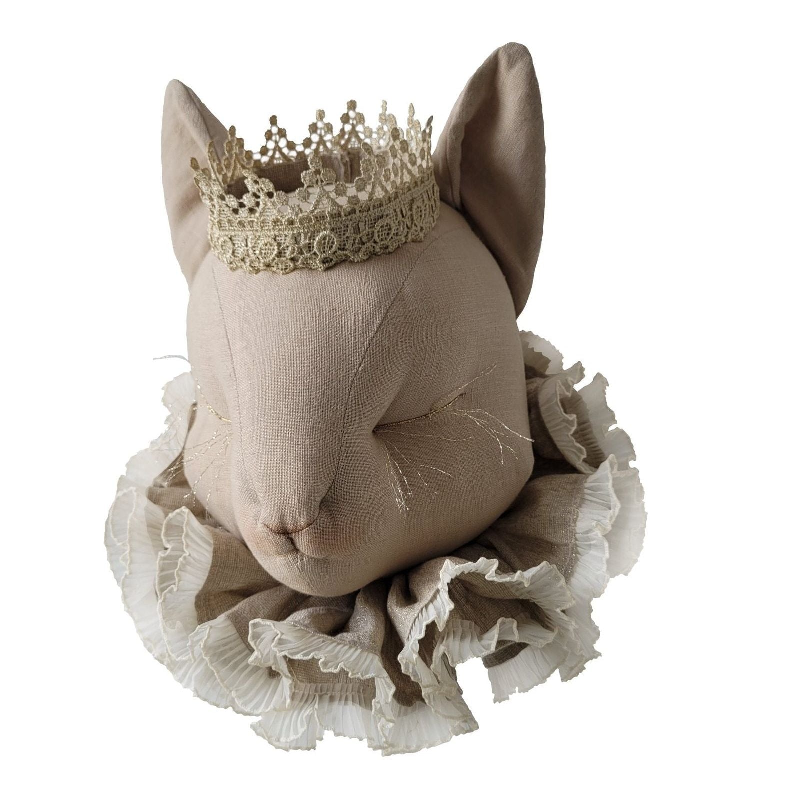 Prachtig handgemaakte kat.Deze kat draagt een mooi kroontje en is een buitengewoon mooie decoratie voor in de kinderkamer!