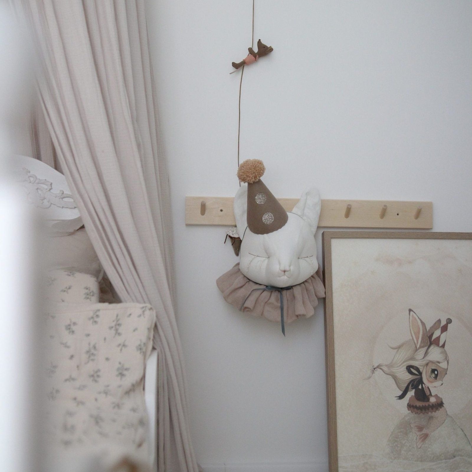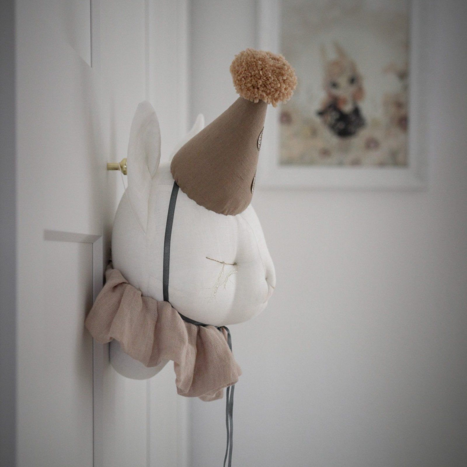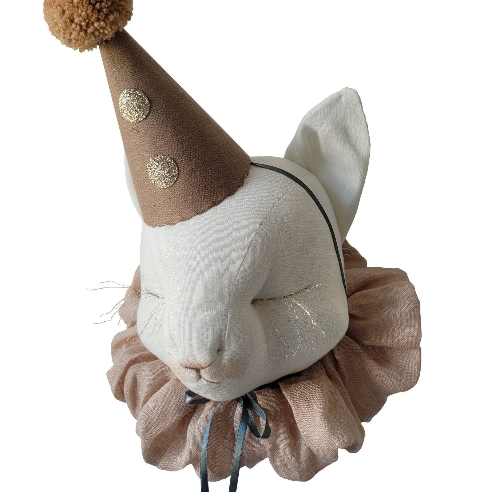 Prachtig handgemaakte kat.Deze kat draagt een lief hoedje en is een buitengewoon mooie decoratie voor in de kinderkamer!