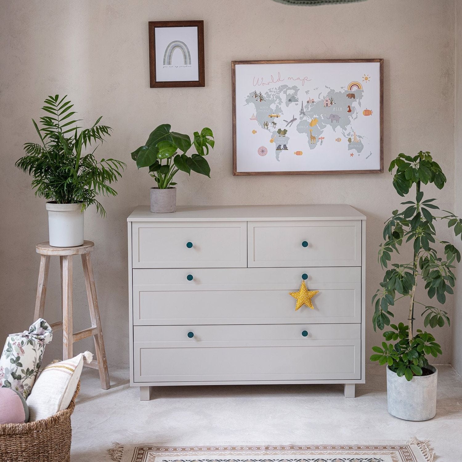 - Materiaal:geverfd MDF, beukenhout - planken geproduceerd in overeenstemming met veiligheidsnorm EN71 / 3 met betrekking tot kindermeubilair en speelgoed.mdf-elementen zijn geverfd met veilig voor kinderen polyurethaanvernis - gecertificeerd voor naleving van veiligheidsnorm EN71 / 3 met betrekking tot kindermeubilair en speelgoed
