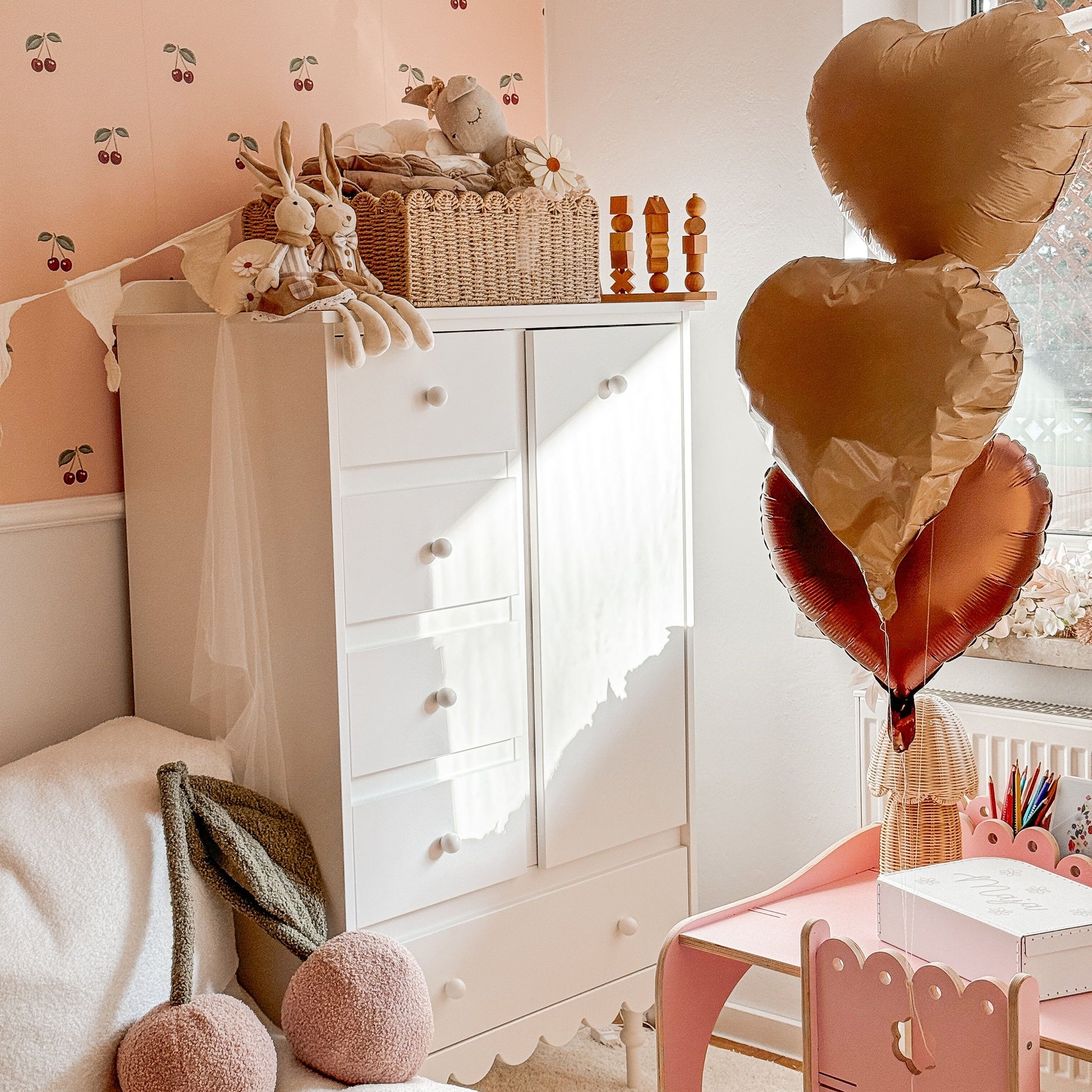 Uiterst charmante ladekast in retrostijl. Het heeft vijf laden en een kast met drie planken erin. Zowel lades als deuren zijn voorzien van hoogwaardige geleiders en scharnieren met softclose.