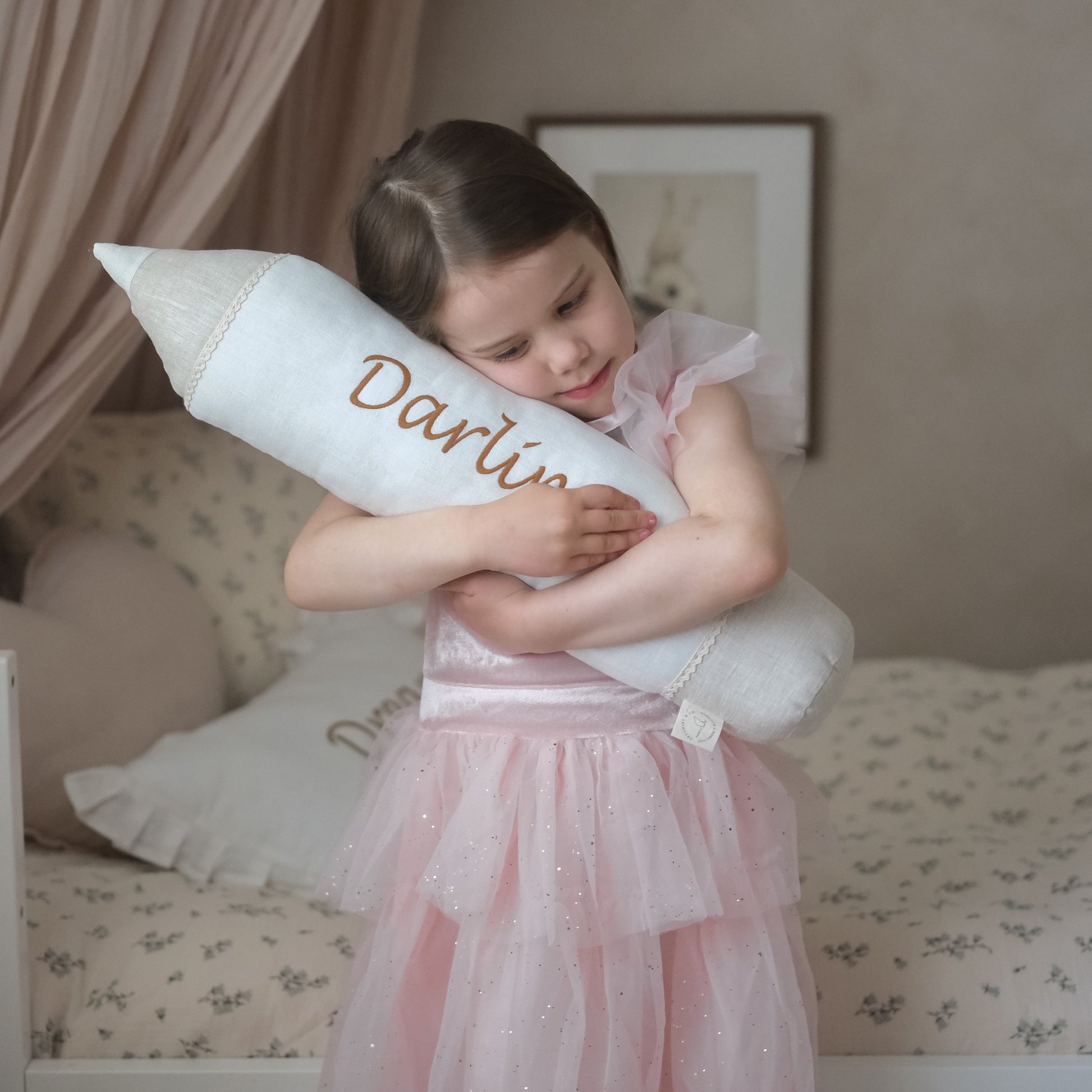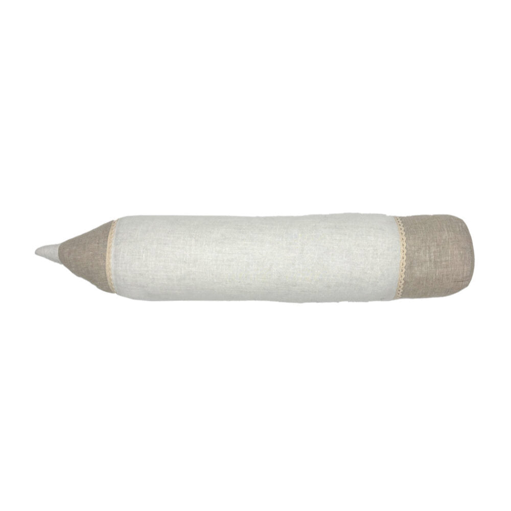 Een speelse en unieke decoratie voor de kinderkamer of een bijzonder cadeau idee: dit kussen in de vorm van een potlood. Met zorg gemaakt van 100% linnen en gevuld met anti-allergisch polyestervezel, waardoor het niet alleen mooi maar ook veilig is.