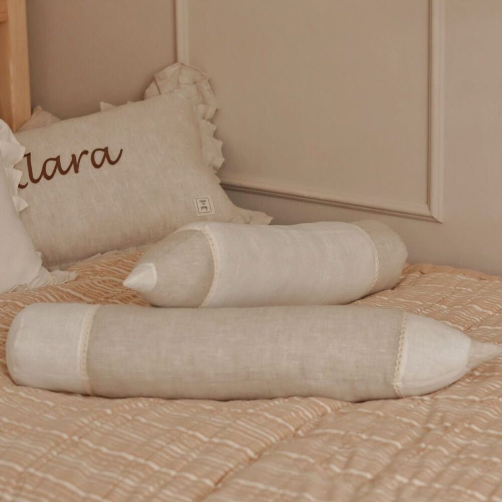 Een speelse en unieke decoratie voor de kinderkamer of een bijzonder cadeau idee: dit kussen in de vorm van een potlood. Met zorg gemaakt van 100% linnen en gevuld met anti-allergisch polyestervezel, waardoor het niet alleen mooi maar ook veilig is.