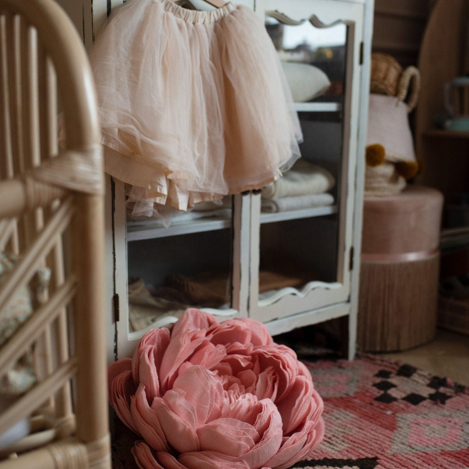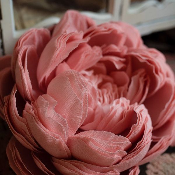 Deze dromerige wandbloem in antique pink is een echte blikvanger. Handgemaakt van Italiaans crepe papier en geïnspireerd op het behang uit de Deugniet X @dehuismuts Collectie. De bloem bevat maar liefst 400 blaadjes en is eenvoudig op te hangen dankzij het haakje aan de achterzijde.