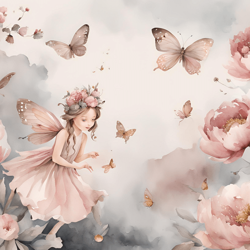 Prachtig behang met vlinder en feeën print. Gedrukt op hoogwaardig fleece, zorgt het voor duurzaamheid en weerstand tegen beschadiging.
