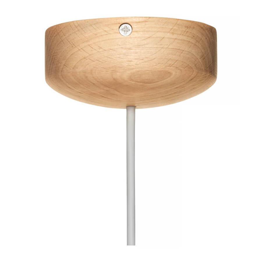 De lamp wordt komt compleet met een houten plafondophanging van beukenhout.