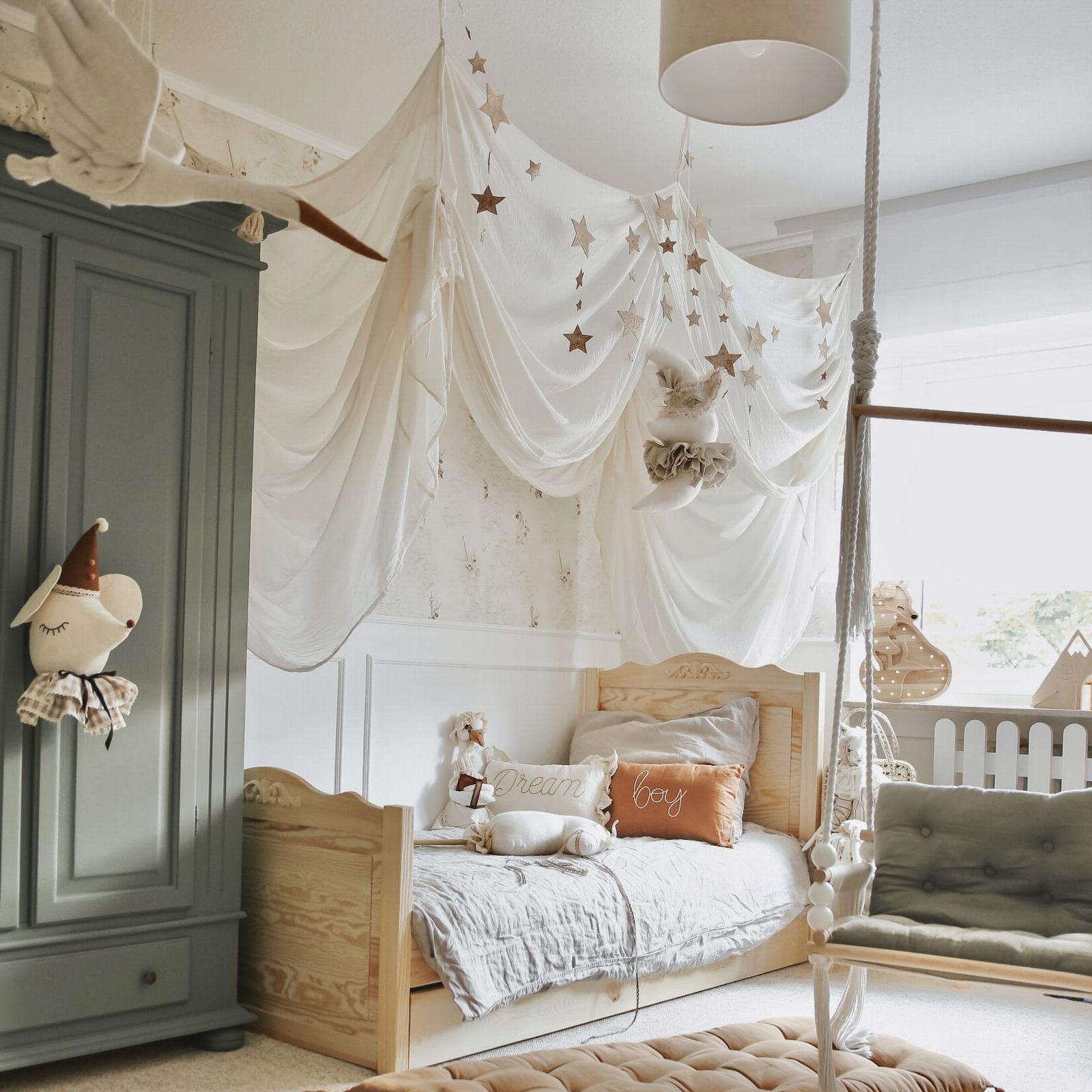 Deze lamp is perfect als verlichting in de baby/ kinderkamer. De lampenkappen zijn handgemaakt van prachtig velvet.De lamp wordt komt compleet met een houten plafondophanging van beukenhout.