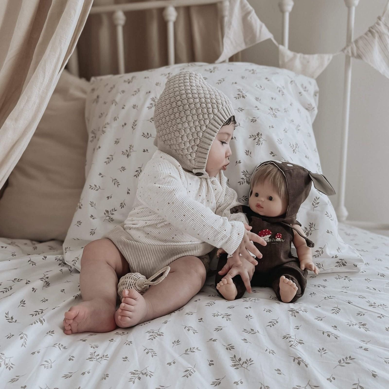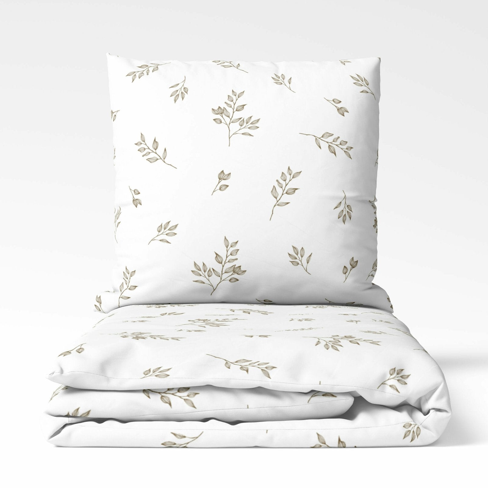 Prachtig beddengoed met kleine blaadjes .De achterkant van deze set is wit.