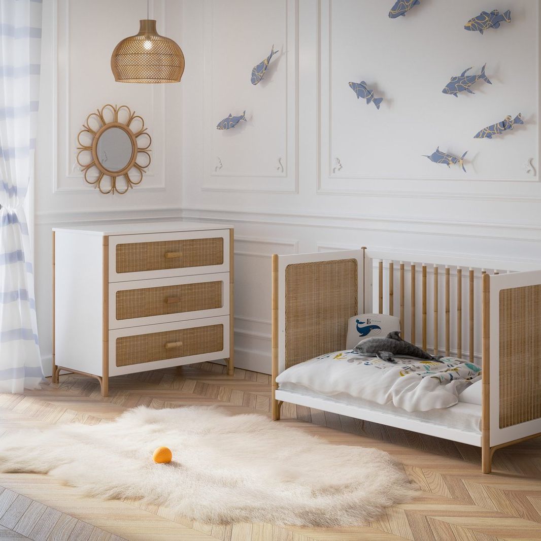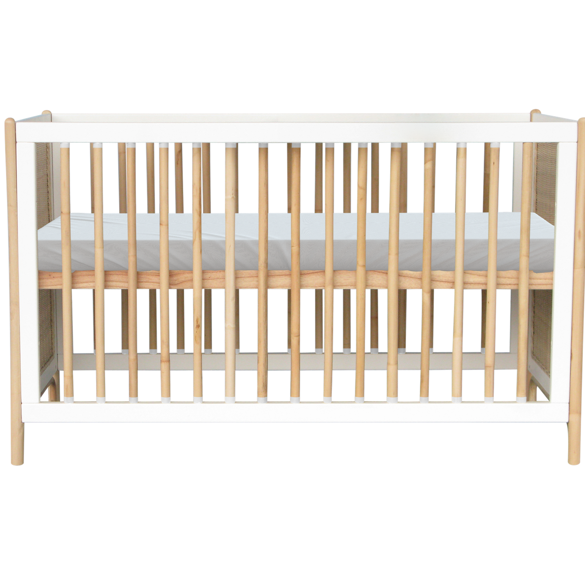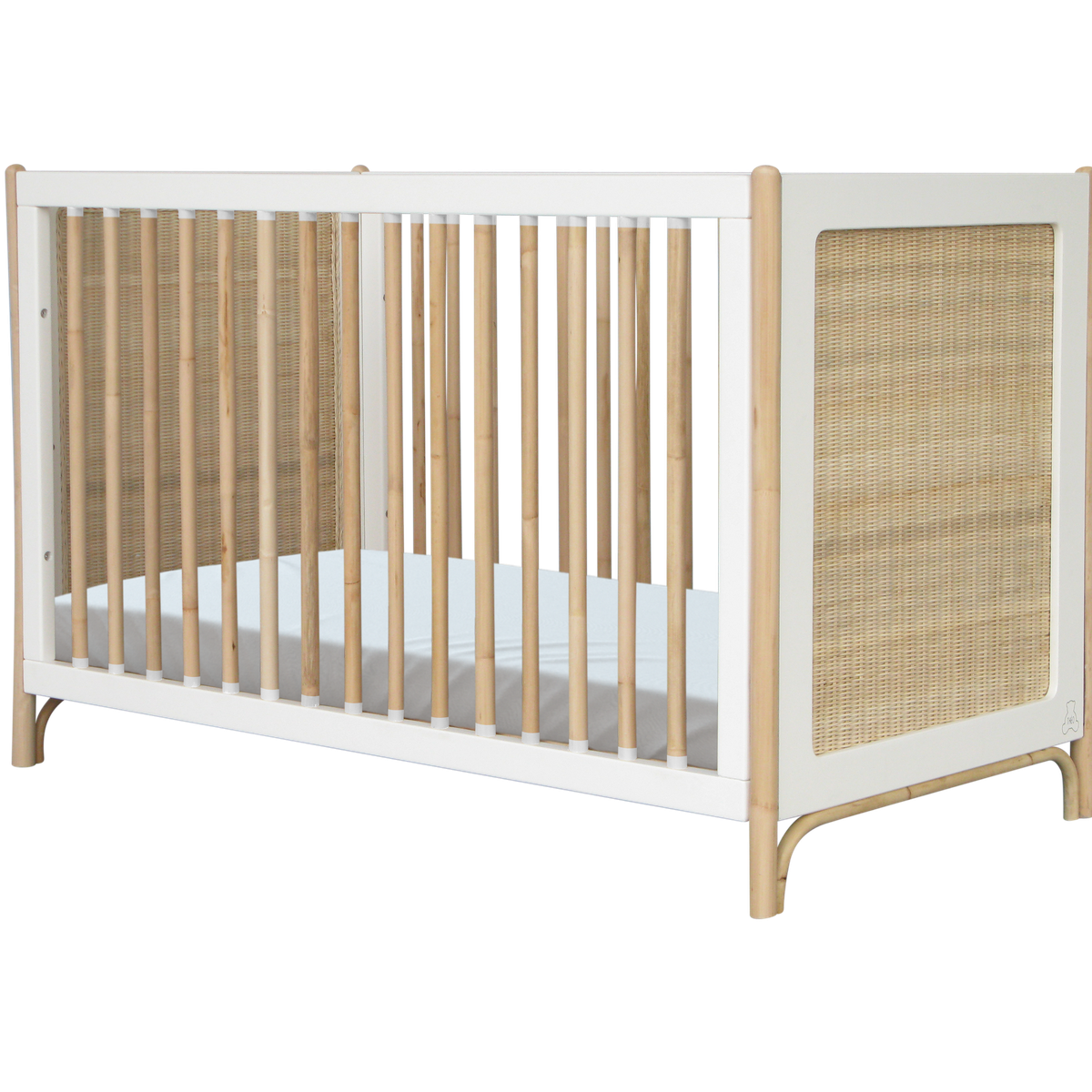 Dit prachtige bed heeft verstelbare zijkanten, mooie panelen van natuurlijk rotan en rotan rieten poten en spijlen. Deze kan worden omgevormd tot een peuterbedje of een zitbankje!Dit ledikant is ontworpen voor een matras van 60 x 120 cm.