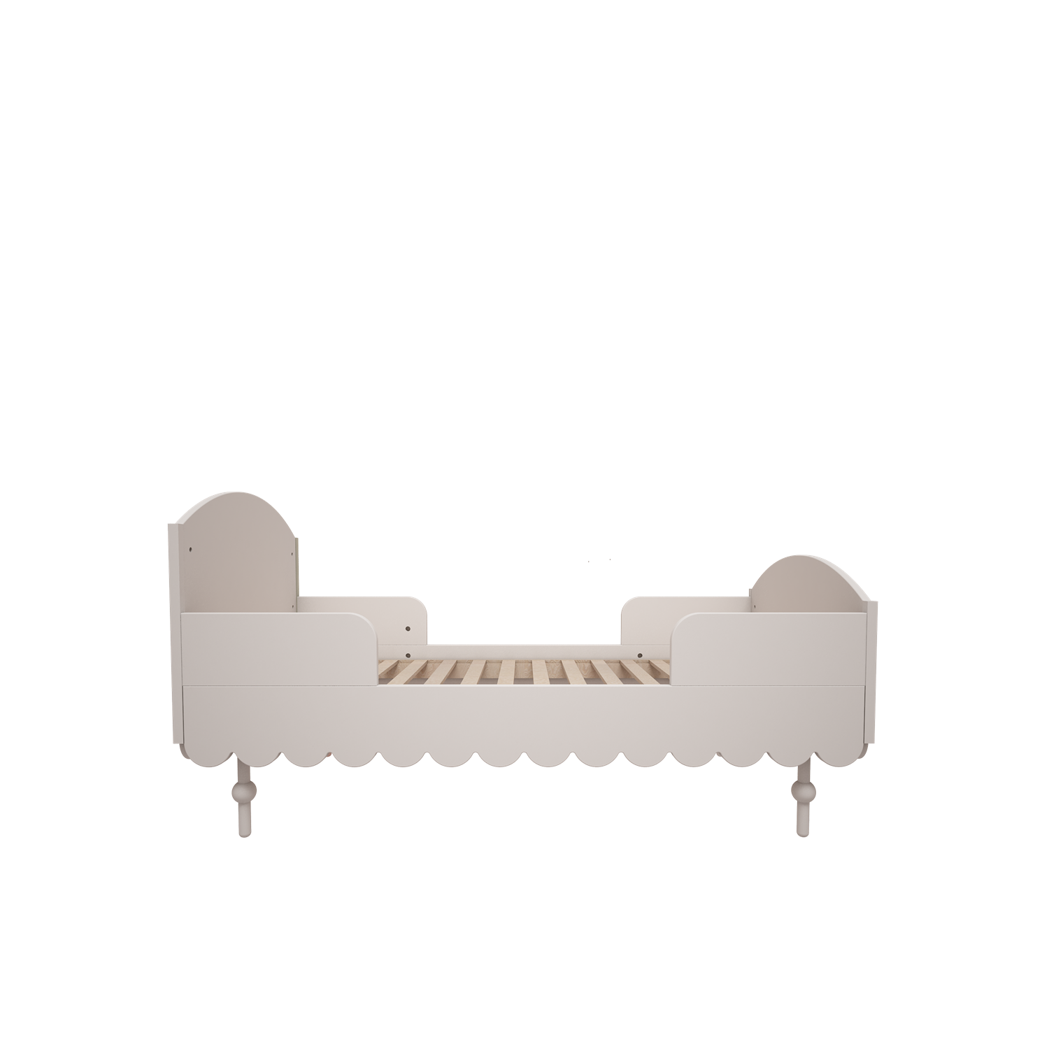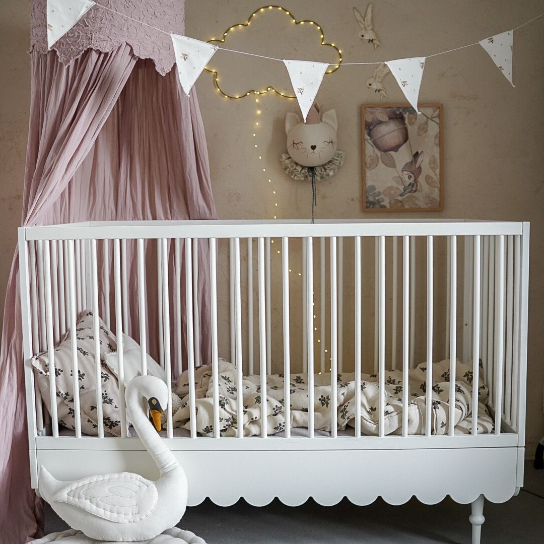 Een prachtig retro kinderbed met drie verstelbare matrashoogtes en uitneembare spijlen. Eenvoudig om te bouwen tot peuterbed. Combineer met andere meubels uit de Babushka-lijn van Woodluck voor een harmonieuze kinderkamer.