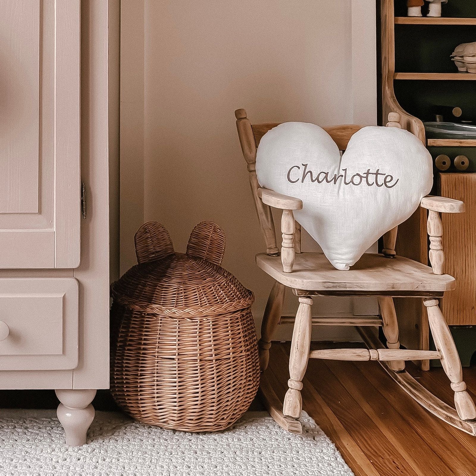Prachtig linnen hart sierkussen met daarop de naam van jouw kindje! Ideaal om te gebruiken ter decoratie van de kinderkamer maar ook een geweldig (kraam) cadeau!