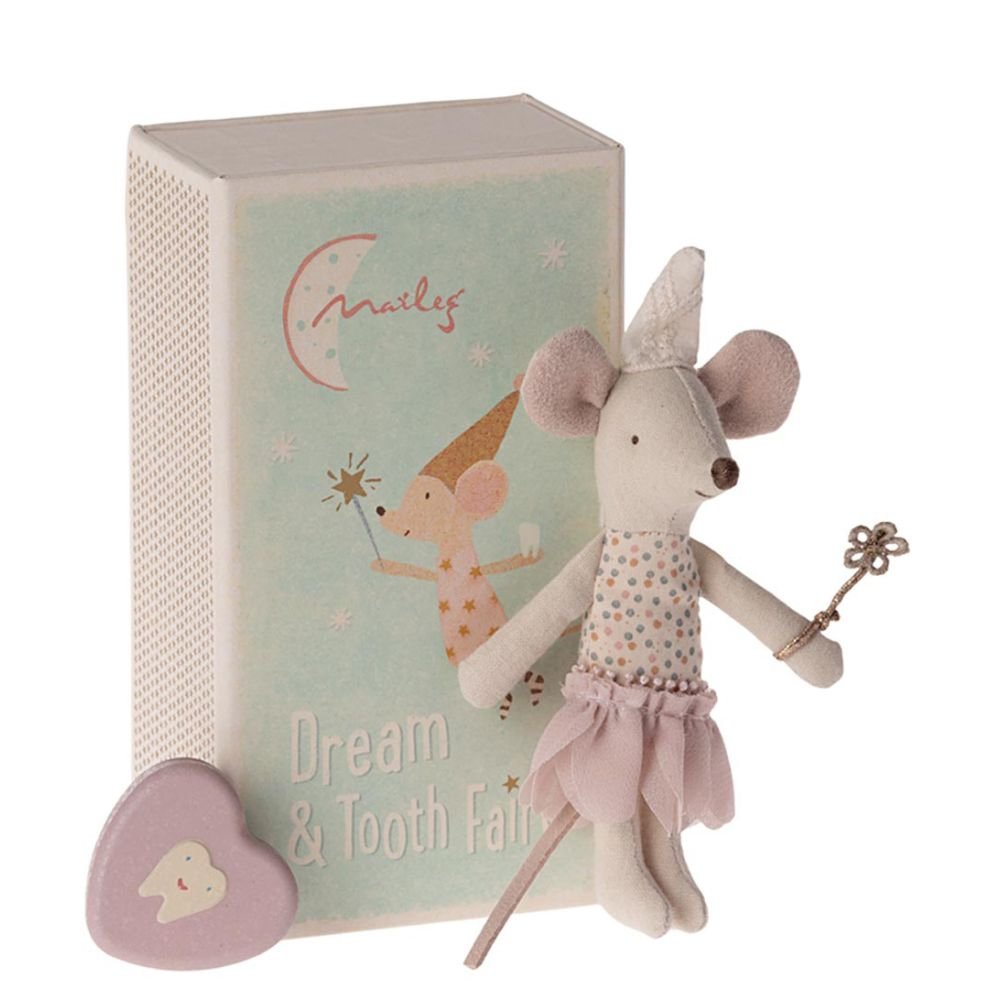 De Tooth Fairy Mouse Little Sister In Matchbox is een charmant muisje, ideaal voor kinderen. Met een hoogte van 11 cm is het klein en handzaam, perfect om overal mee naartoe te nemen. Het muisje is gemaakt van zacht katoen en stevig karton, wat het zowel knuffelbaar als duurzaam maakt. Het gerenommeerde merk Maileg, bekend om zijn hoogwaardige producten, heeft ook hier oog voor detail. Dankzij de tijdloze beige kleur past dit schattige muisje moeiteloos bij elke gelegenheid.