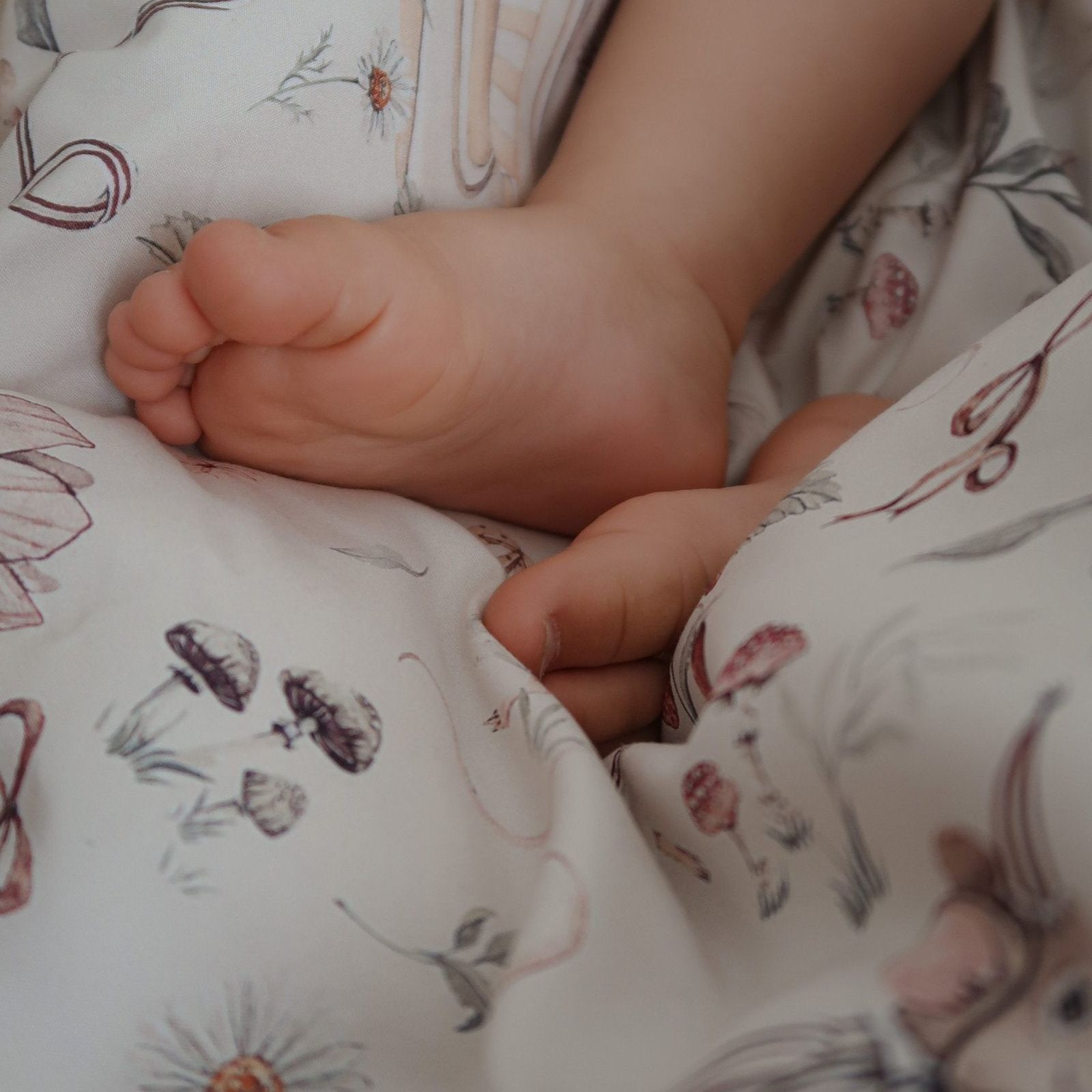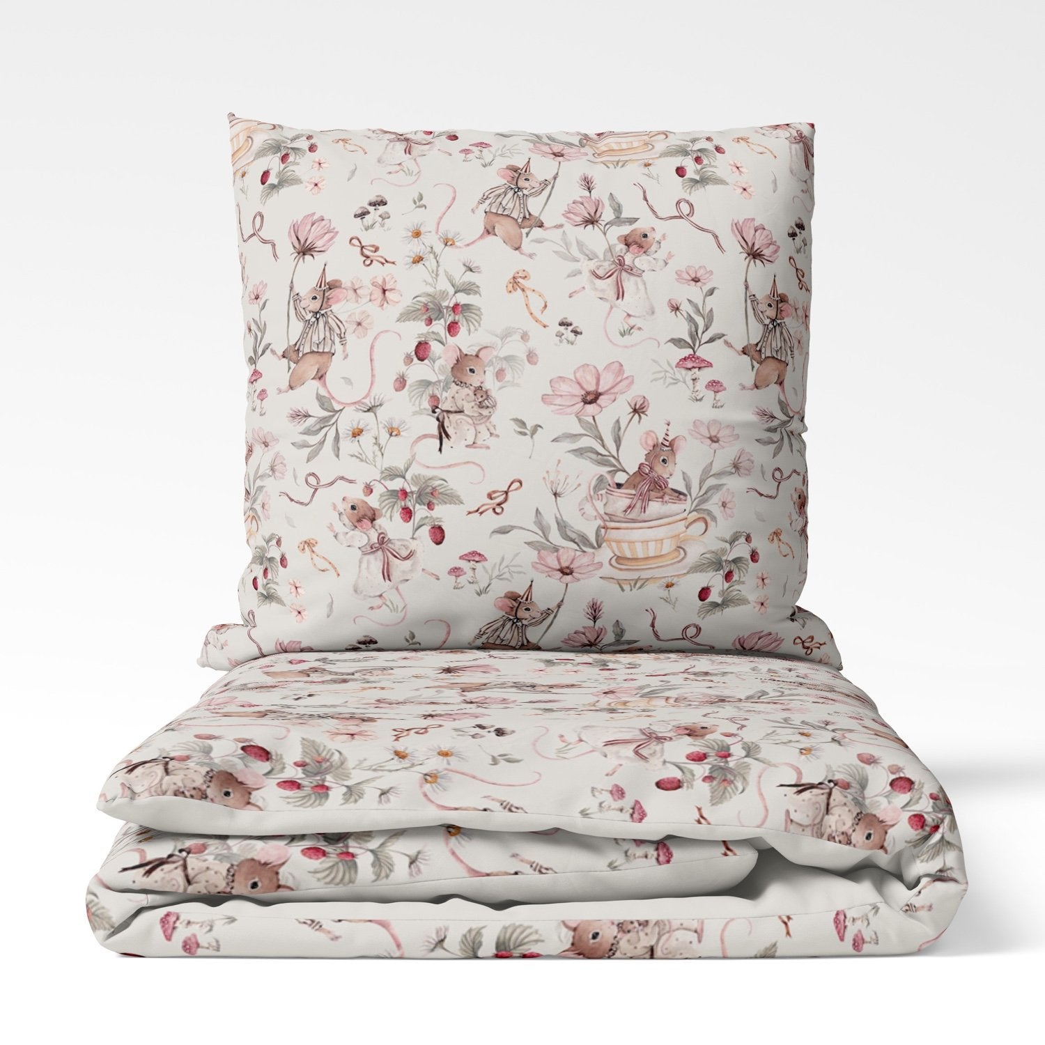 Prachtig beddengoed met muisjes print. De onderkant van het beddengoed is in een beige kleur.