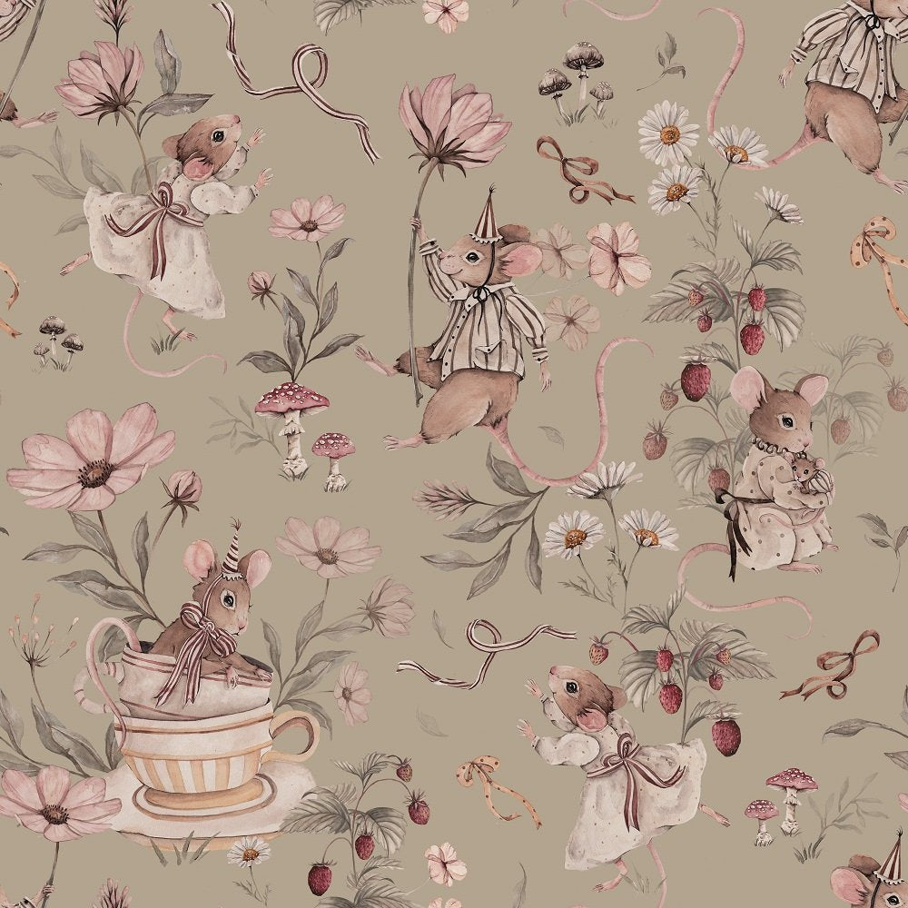 Prachtig behang met lieve muizen print. Indien je dit behang besteld ontvang je 2(!) rollen.