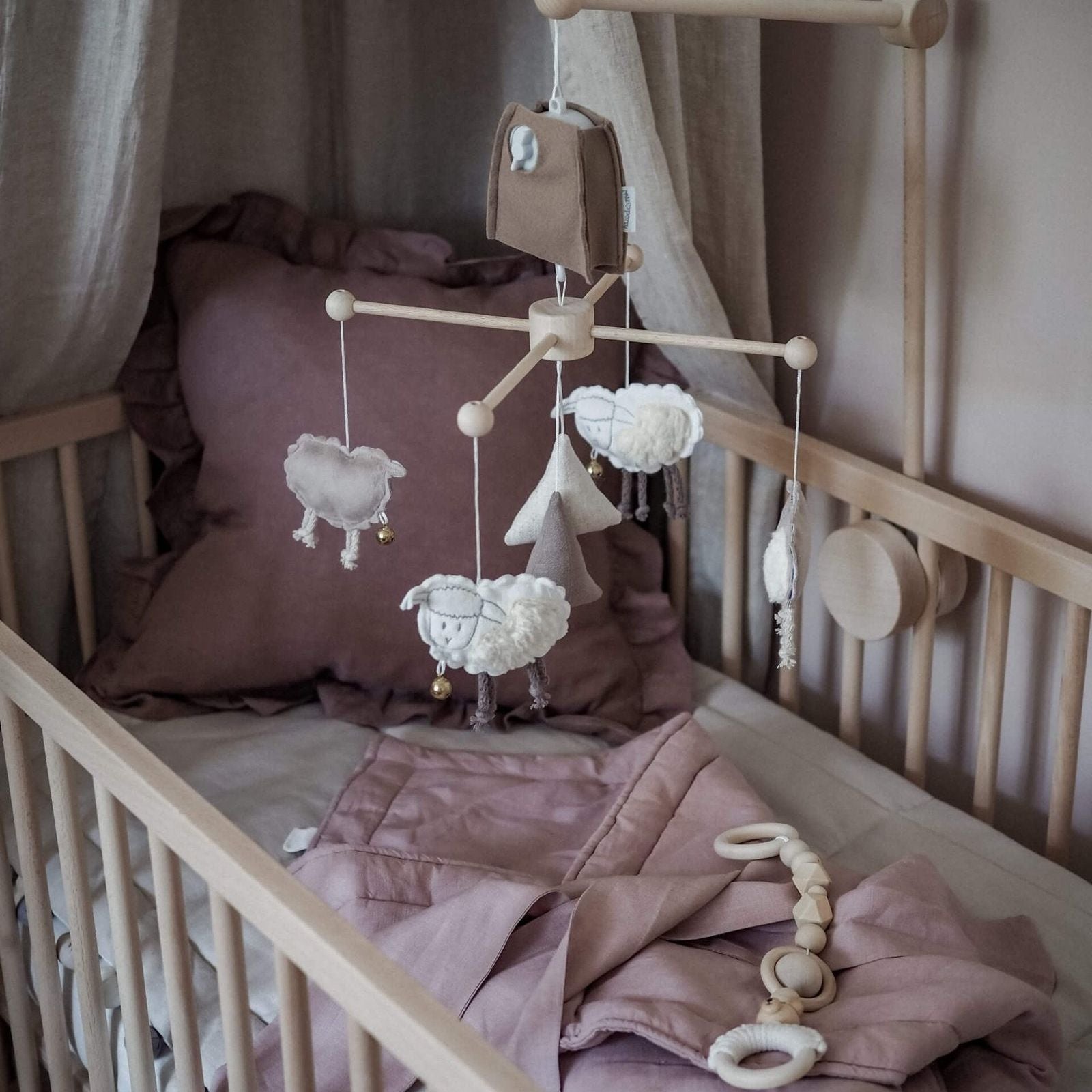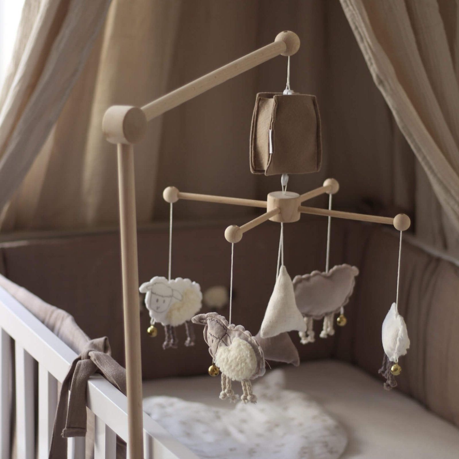 Lieve handgemaakte schapen mobile. Deze mobiel komt compleet met geluid, mobile en mobile houder!