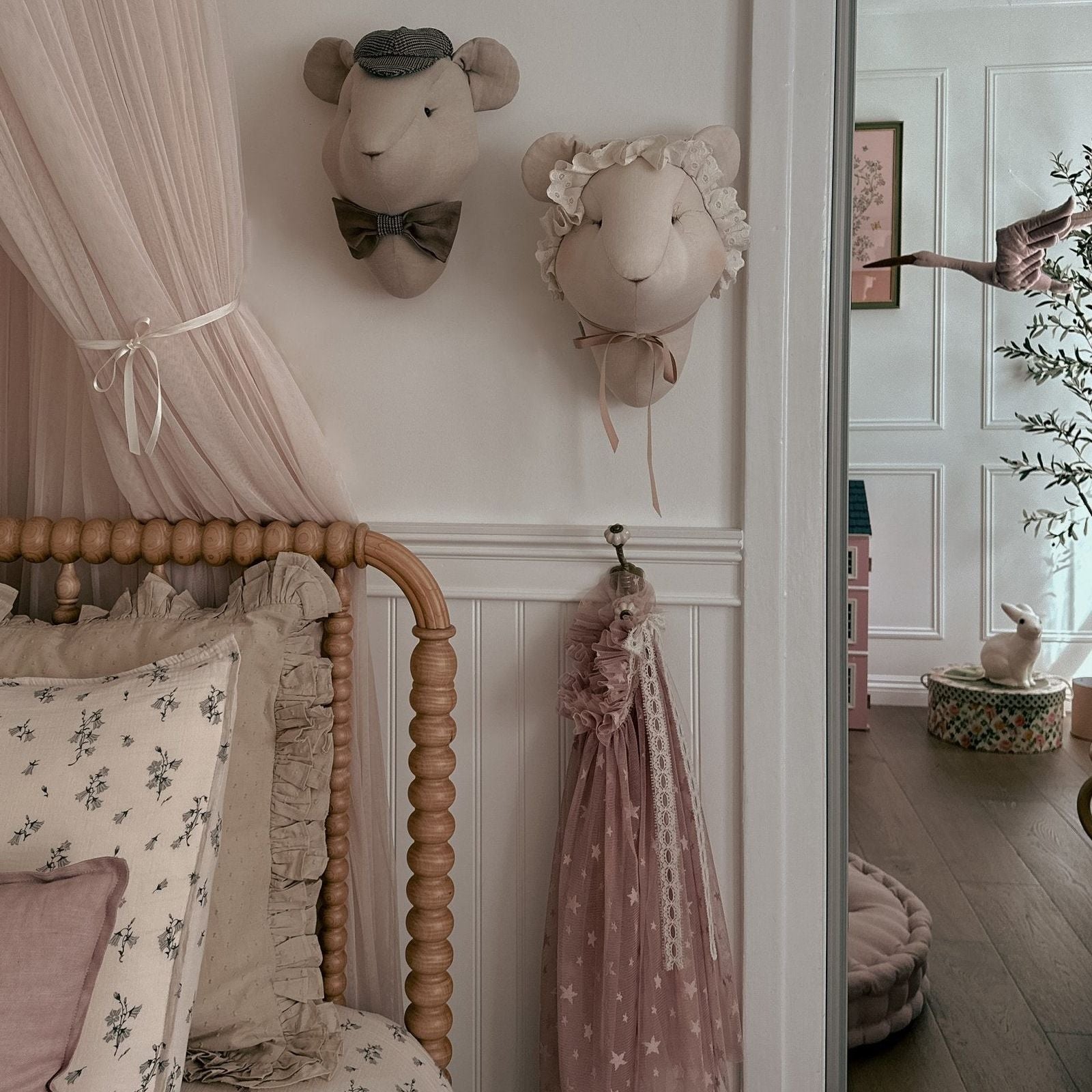 Prachtig handgemaakte muis . Deze muis heeft een lief strikje om en is een buitengewoon mooie decoratie voor in de kinderkamer!