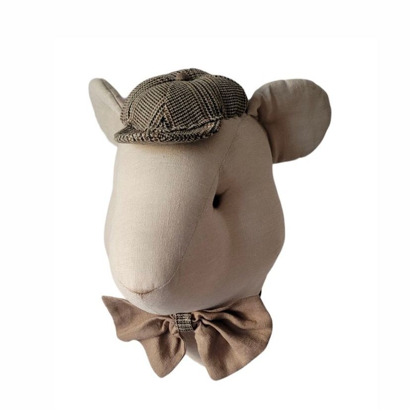 Prachtig handgemaakte muis . Deze muis heeft een lief strikje om en is een buitengewoon mooie decoratie voor in de kinderkamer!
