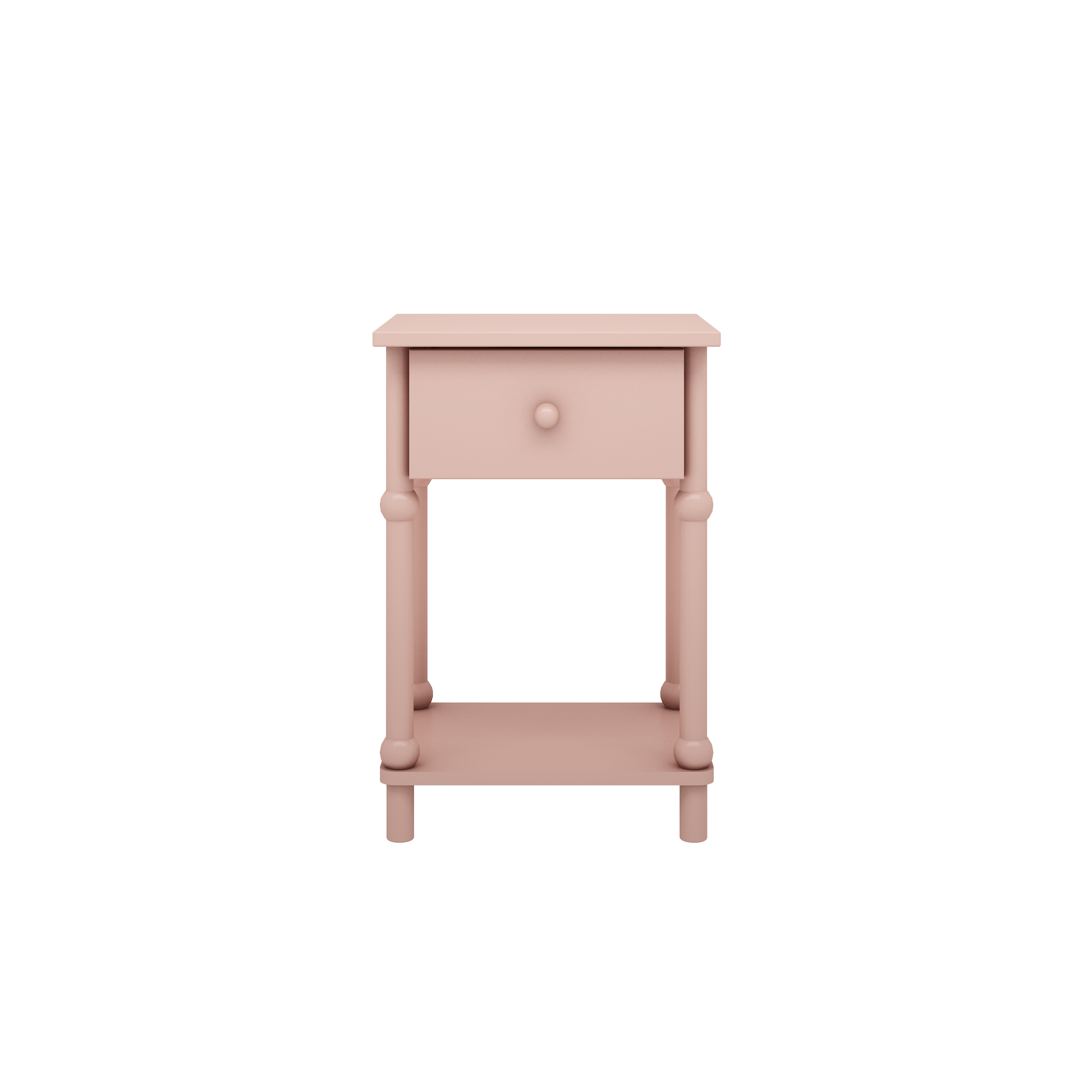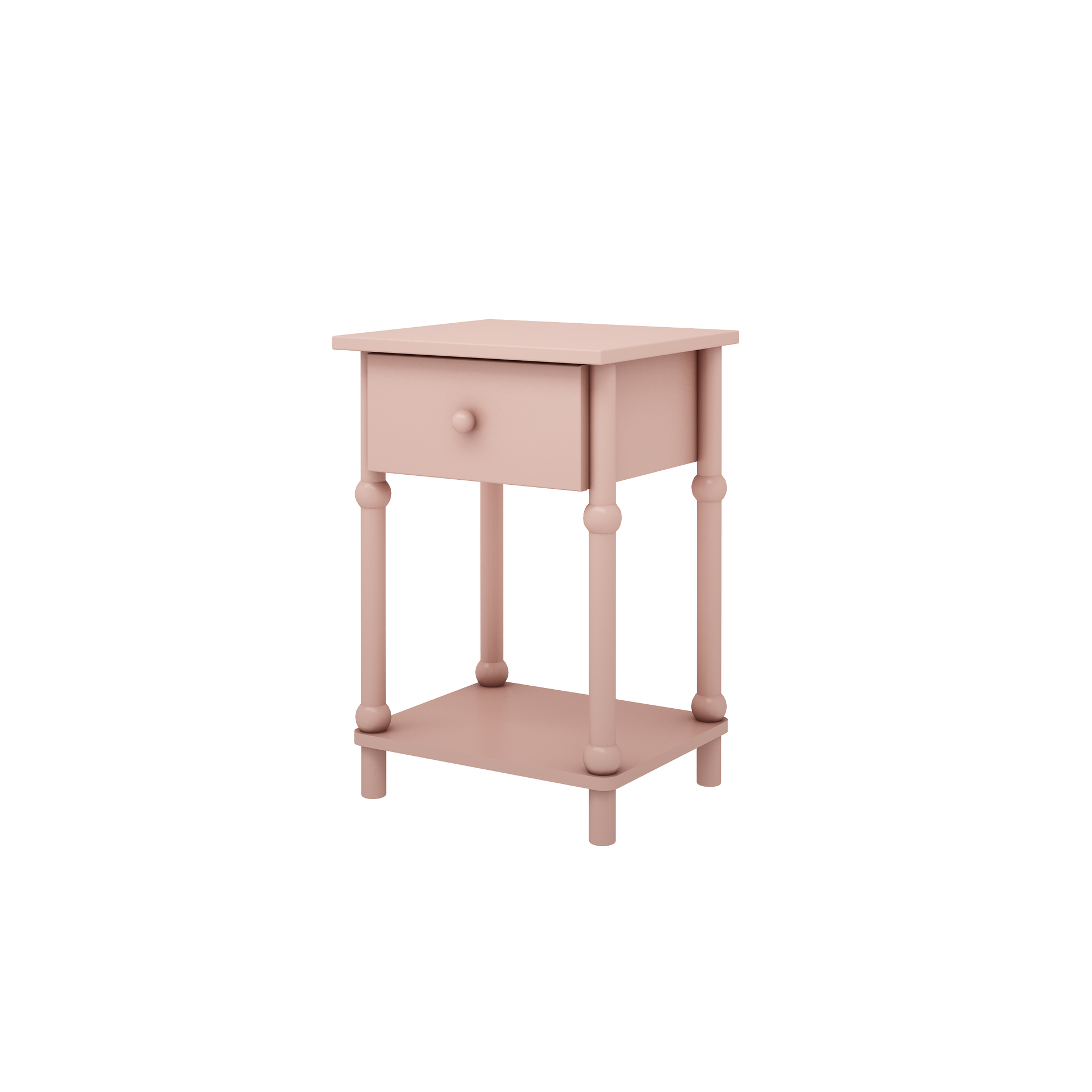Dankzij het handige ladevak is er ruimte om kleine spulletjes netjes op te bergen, terwijl het open plateau onderaan zorgt voor een luchtige uitstraling. De zachte roze tint maakt dit nachtkastje een harmonieuze toevoeging aan een rustige en warme kinderkamer.