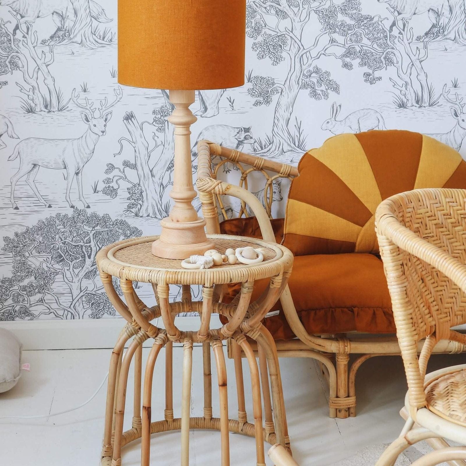 Deze lamp is perfect als verlichting in de baby/ kinderkamer. De lampenkappen zijn handgemaakt van prachtig linnen.