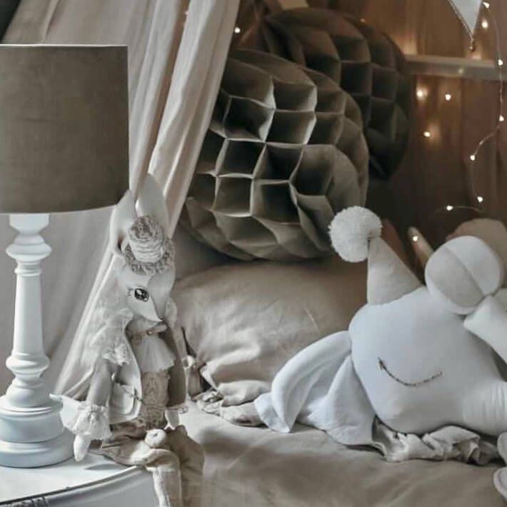 Deze lamp is perfect als verlichting in de baby/ kinderkamer. De lampenkappen zijn handgemaakt van prachtig velvet.