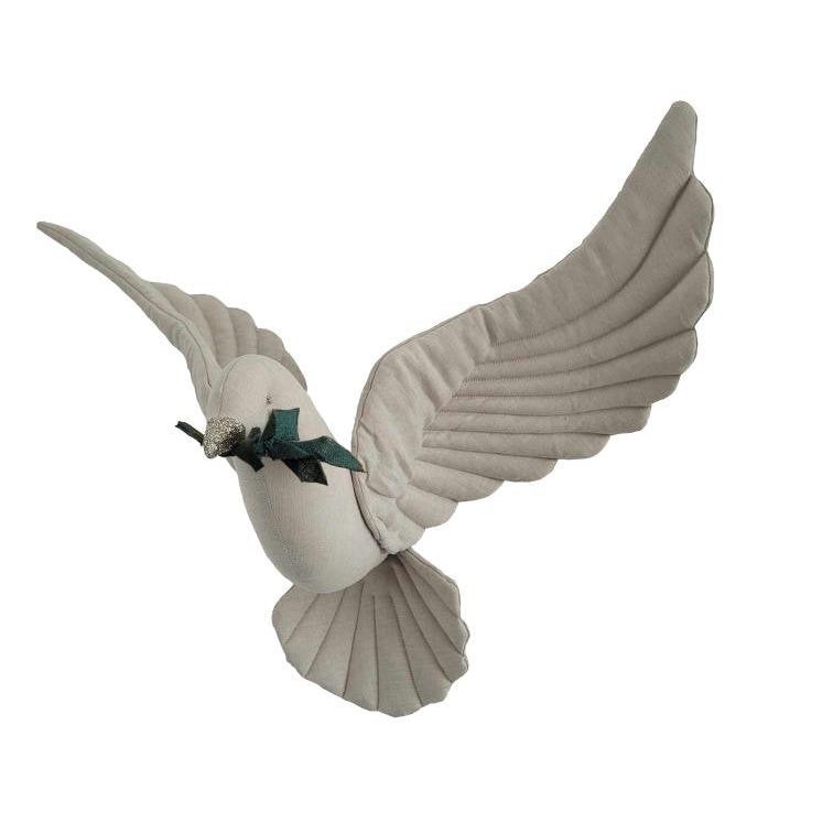 Hoe mooi zijn deze handgemaakte linnen duifjes? Het glitter snaveltje houd een takje vast! Handgemaakt met liefde, en dat zie je! Waar ga jij deze ophangen? Onder het bedhemeltje, aan het plafond? Dit duifje is verkrijgbaar in meerdere kleuren. Let op: Dit item is puur ter decoratie, laat je kind hier niet mee spelen. Buiten bereik van kinderen houden.