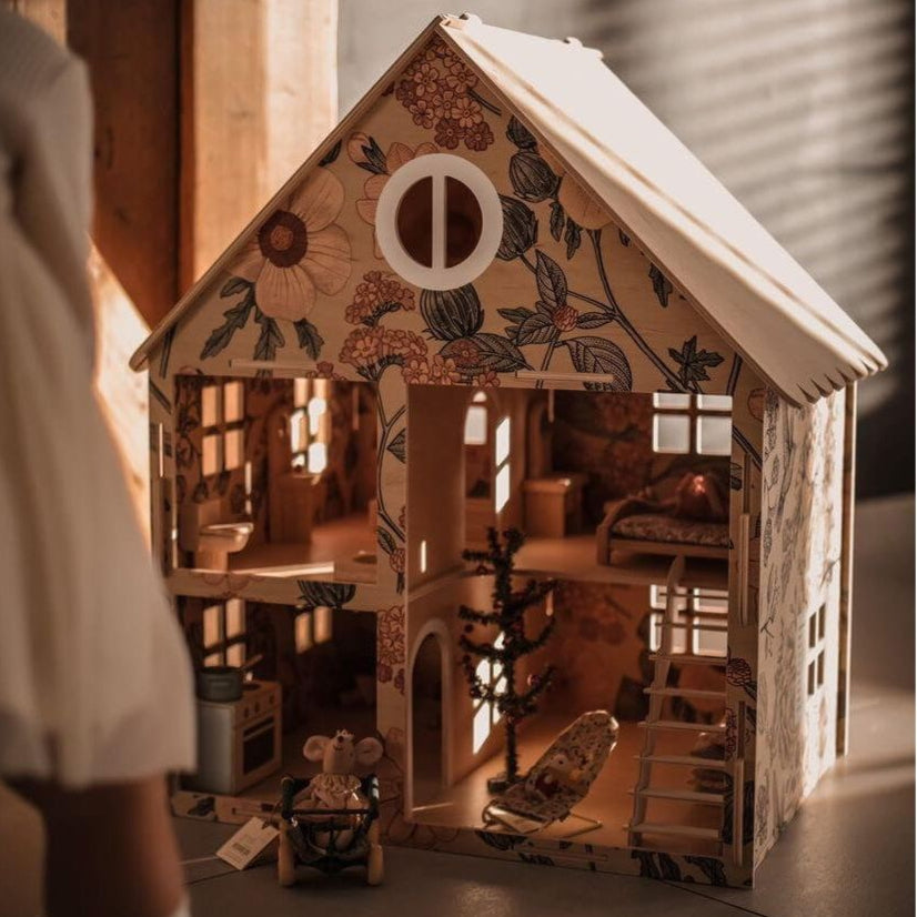 - Materiaal: Dit poppenhuis is gemaakt van delicaat berkenmultiplex van 6 mm dik. Multiplex heeft FSC-certificaten.