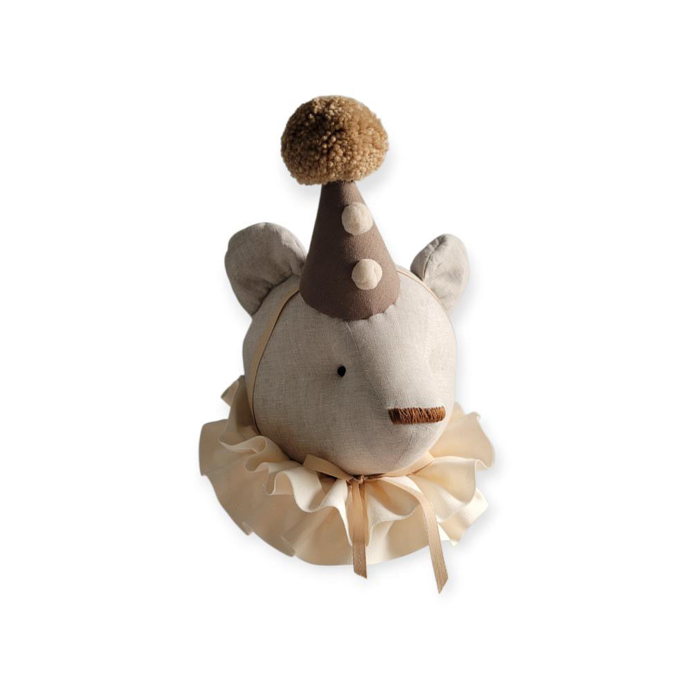 Prachtige handgemaakte linnen beer voor aan de wand of kast.