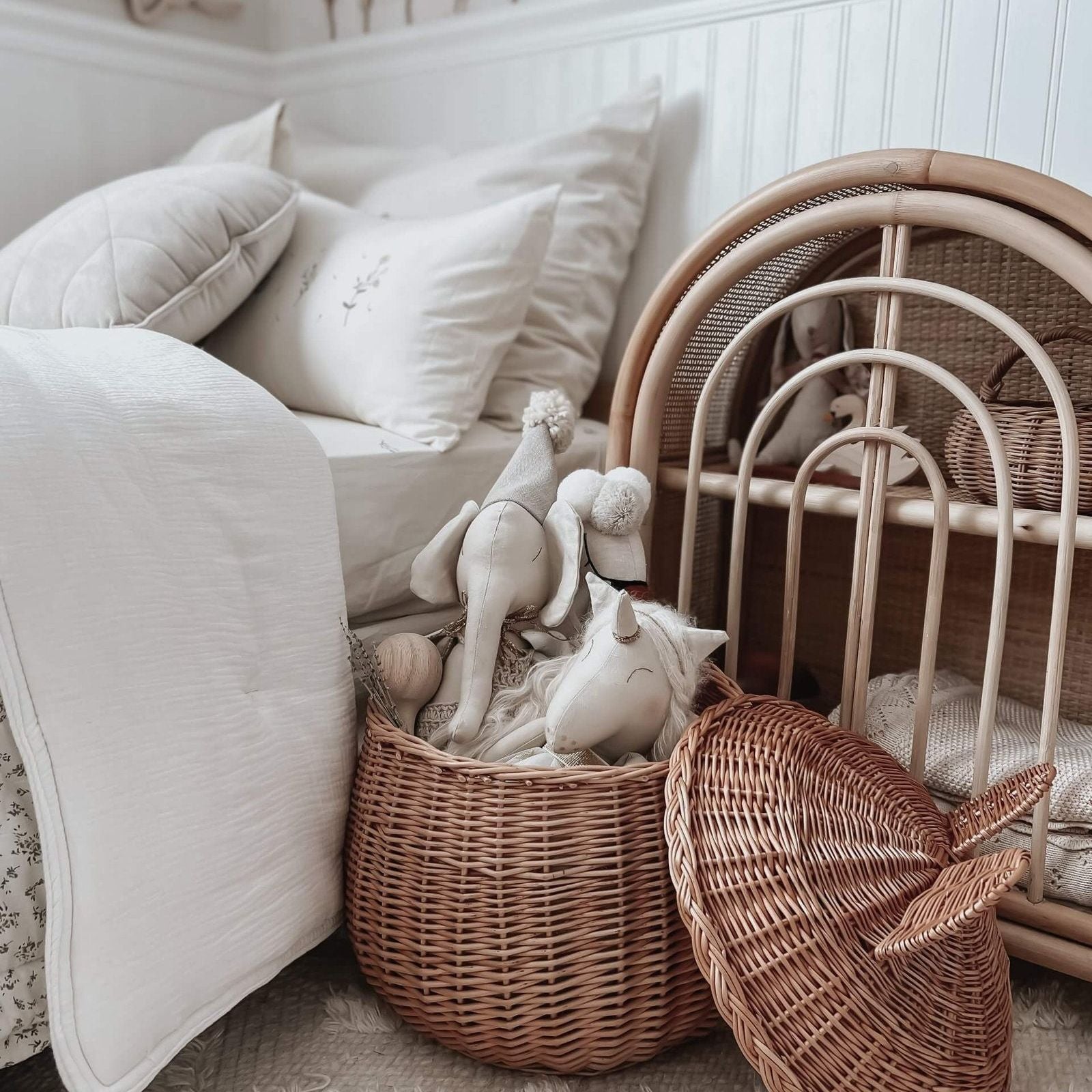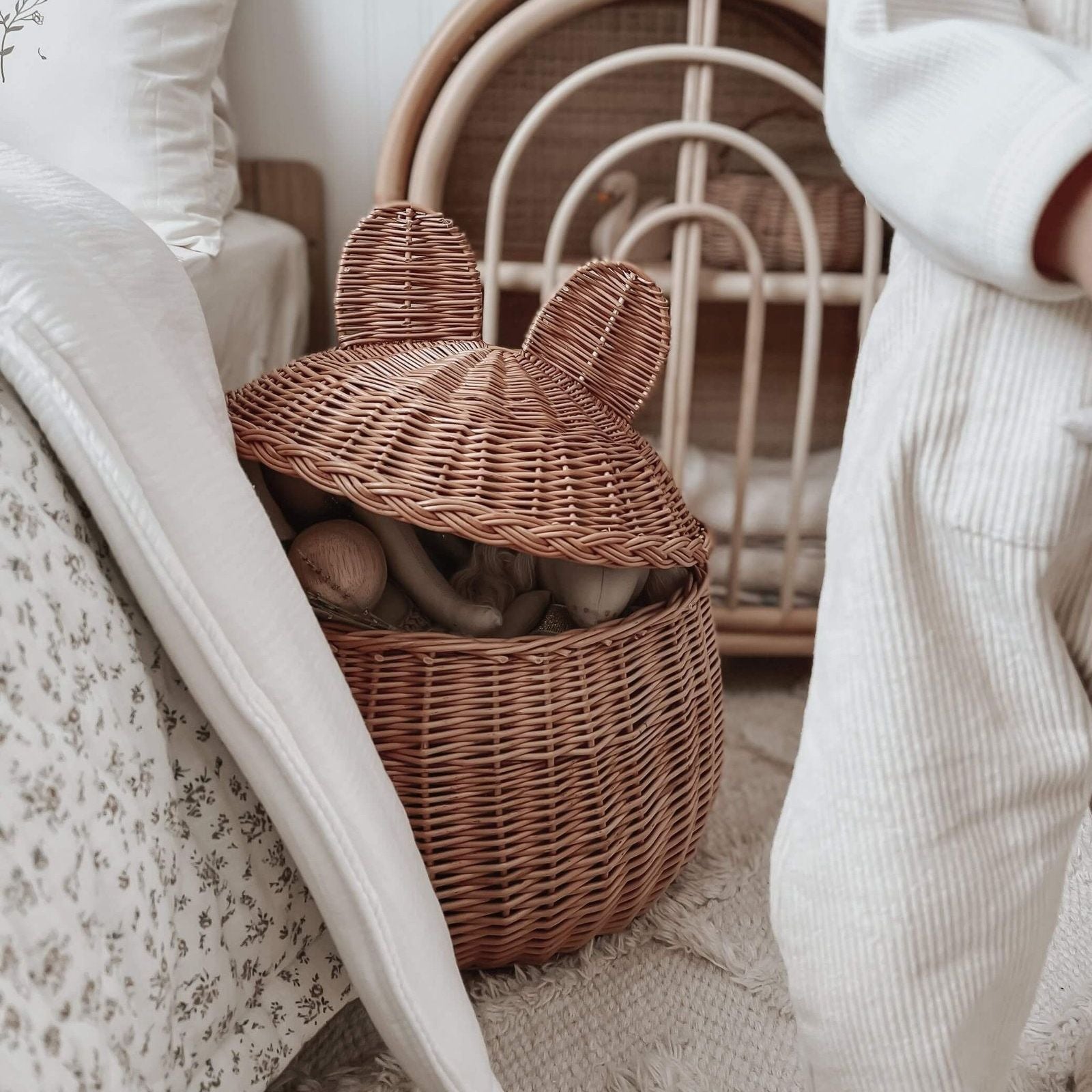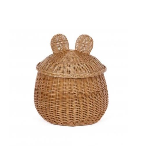 Een mooie grote handgemaakte rieten mand met schattige beren oren! Berg hier speelgoed of knuffels in op.