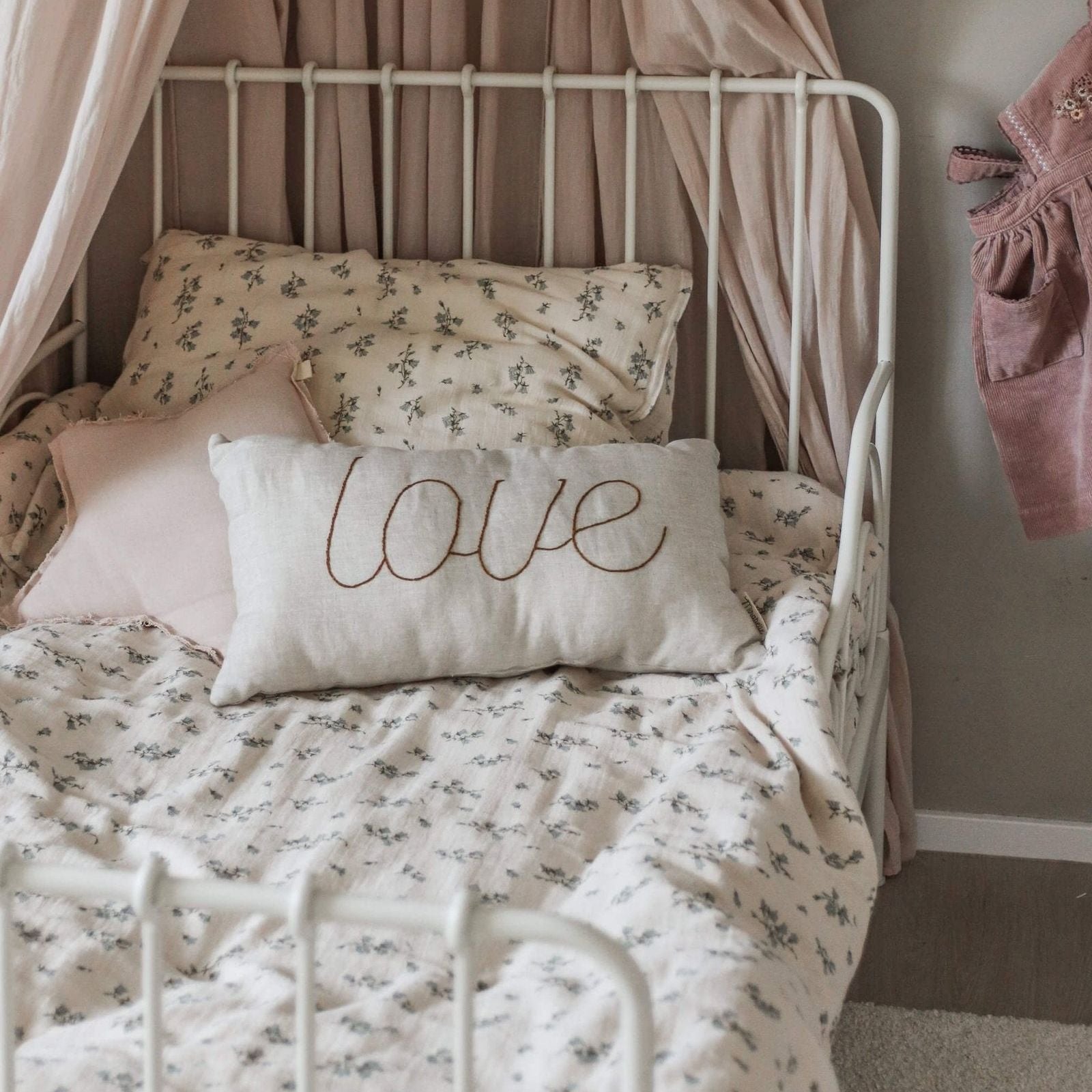 Prachtig sierkussen met de tekst ' Love'. Deze zijn ideaal om te gebruiken ter decoratie van een kinderkamer.