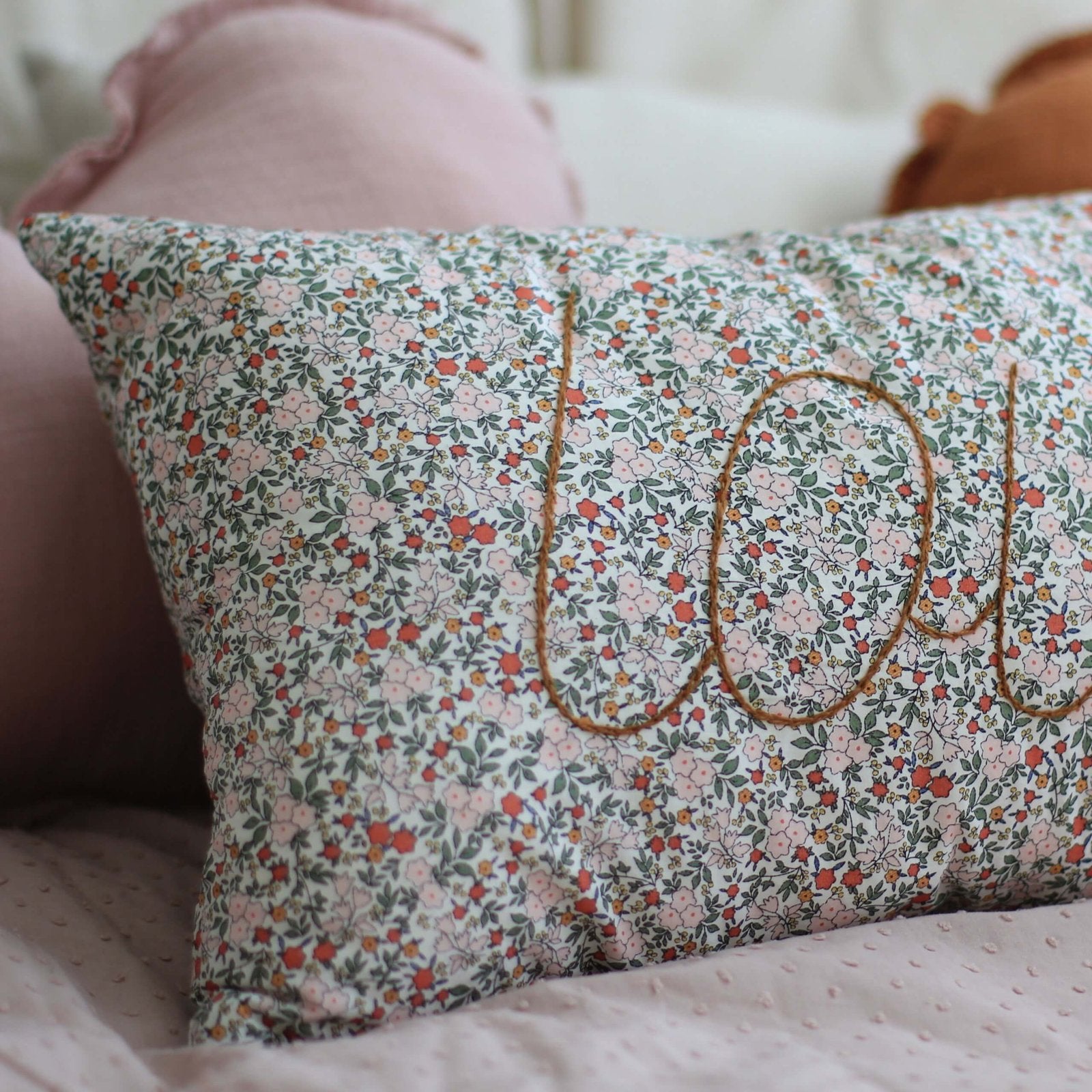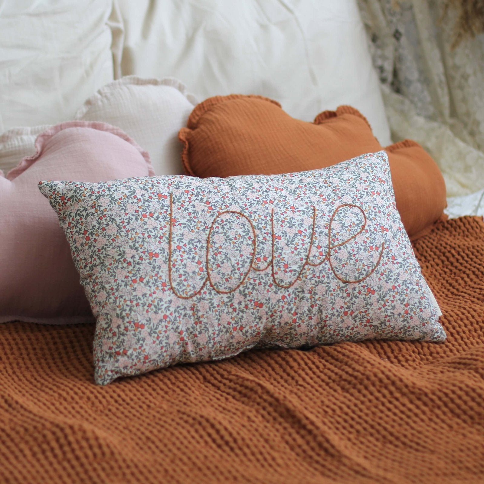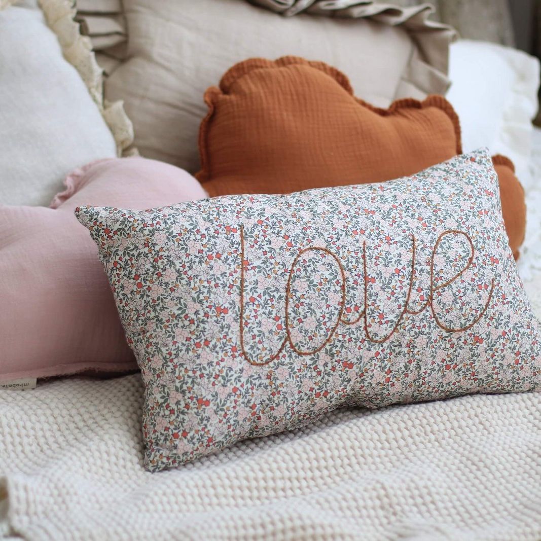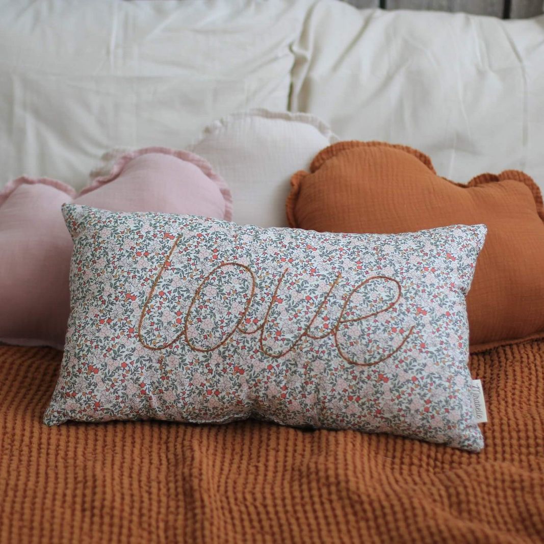Prachtig sierkussen met de tekst ' Love'. Deze is in beperkte oplage verkrijgbaar! Deze zijn ideaal om te gebruiken ter decoratie van een kinderkamer.