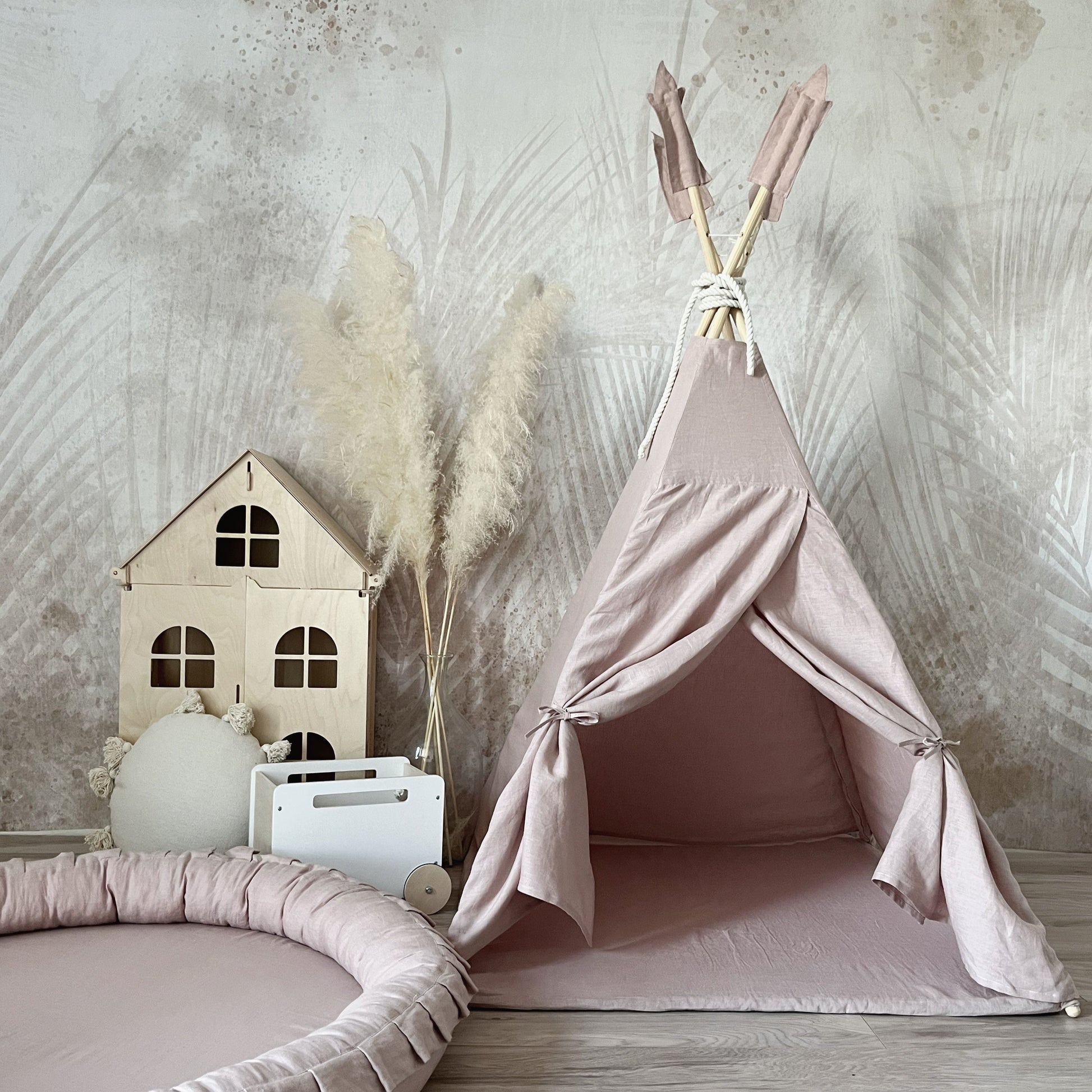 Een tijdloze en duurzame tipitent van 100% linnen ,een knus plekje om te spelen, lezen of ontspannen. Dankzij de natuurlijke kleur en minimalistische stijl past hij in elke kinderkamer of speelhoek.