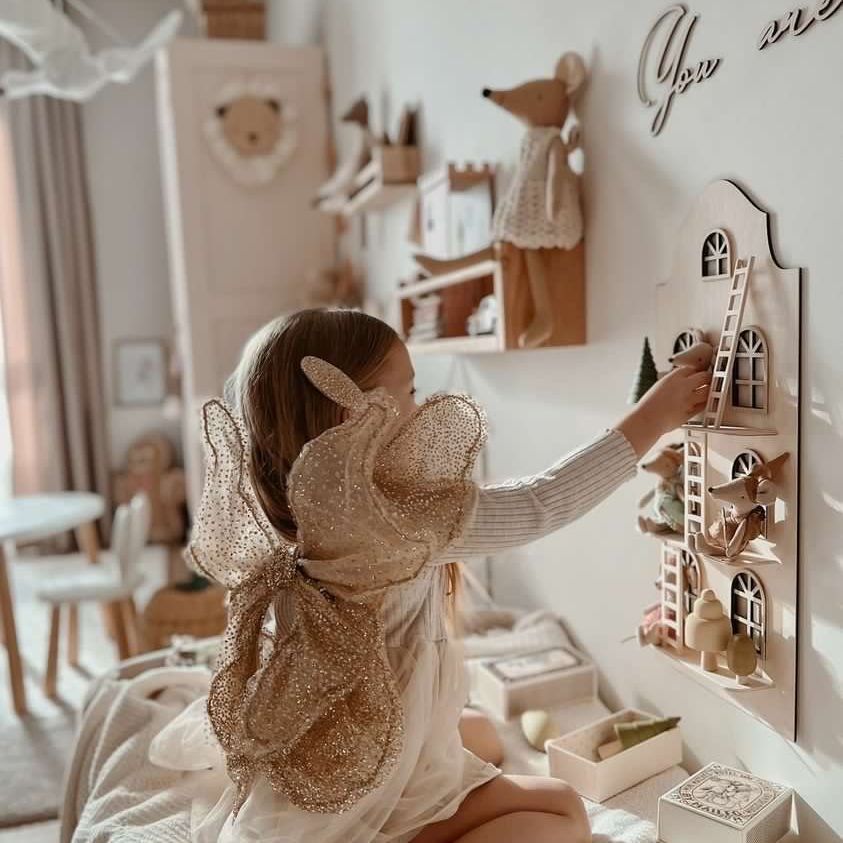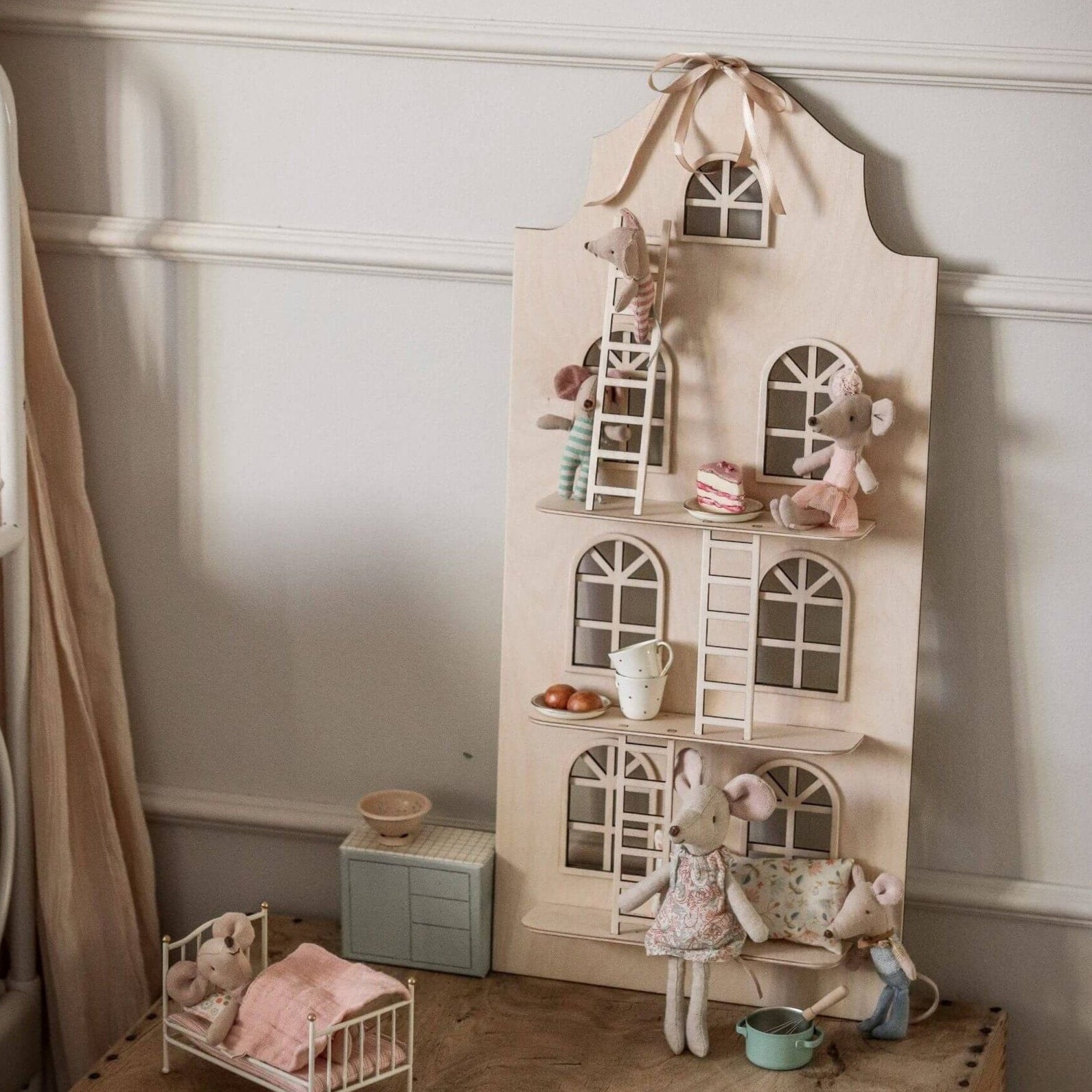 2 in 1 ! Het is een plank en poppenhuis is 1. Maar liefst 3 ladders, raamkozijnen - Hier vinden de bekende muizen poppetjes het reuze fijn! Gemaakt met oog voor detail voor mensen die van originaliteit en kwaliteit houden. De plank is niet alleen fantastisch speelgoed, maar ook een prachtige decoratie voor de kinderkamer.