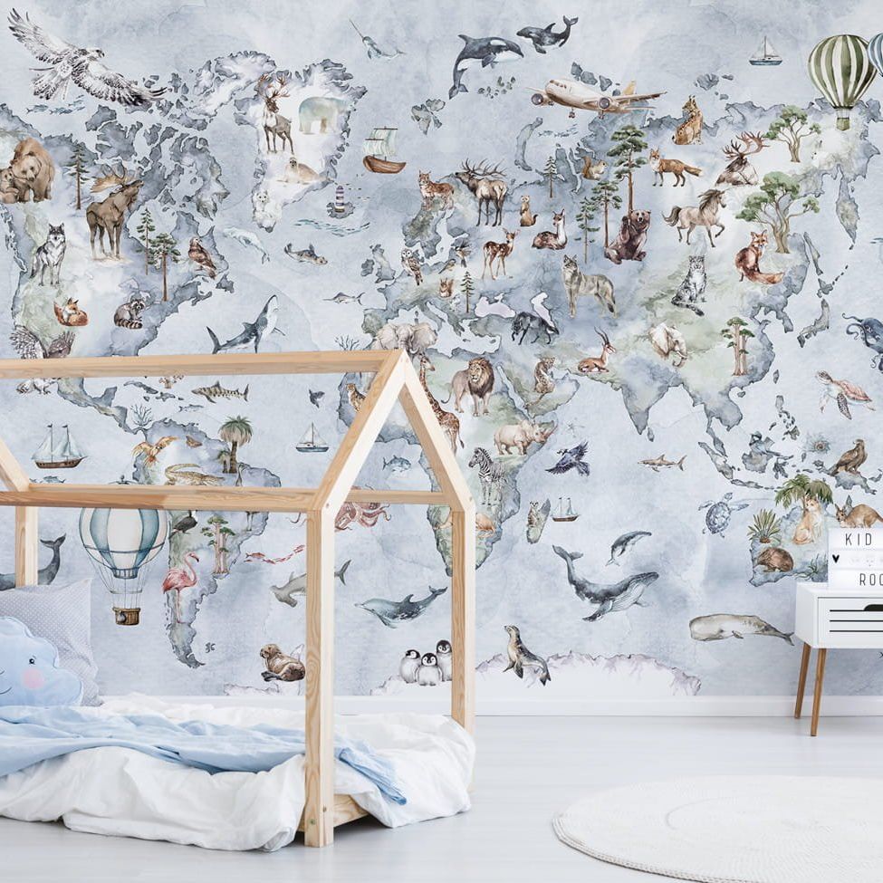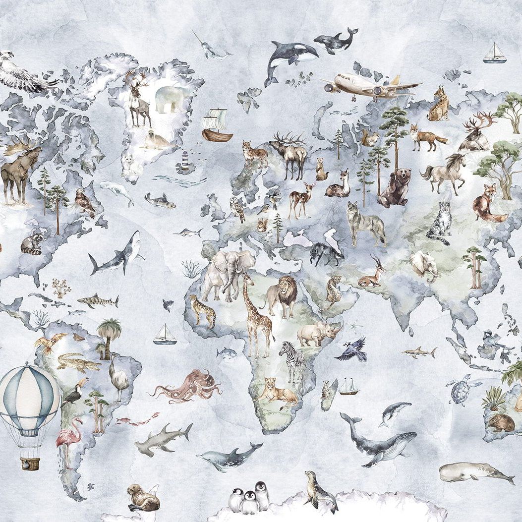 World map -Blauw-Behang