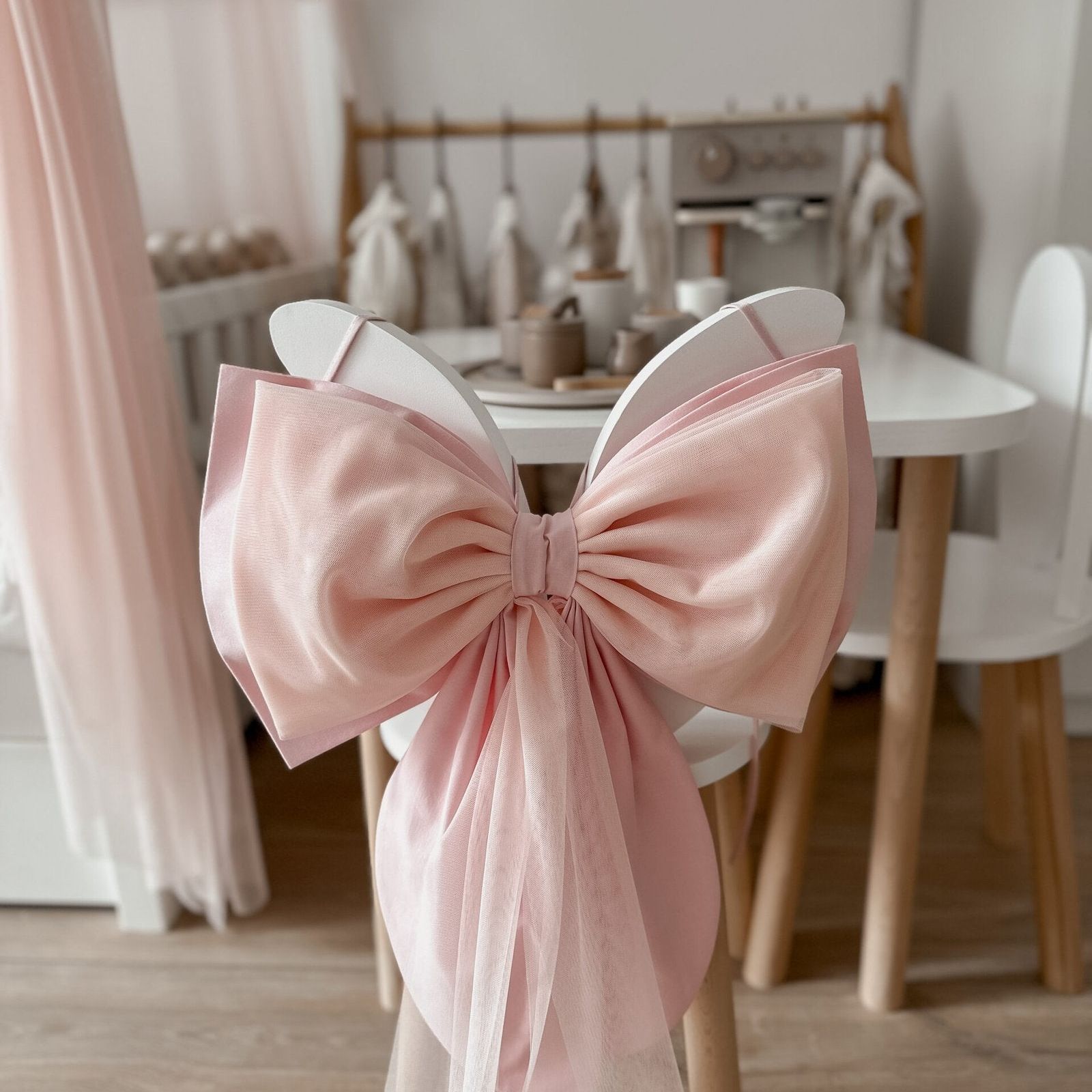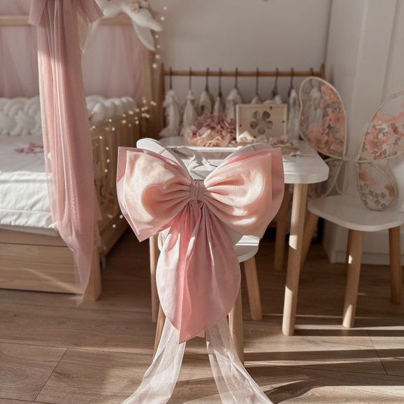 Prachtige decoratieve strik welke je op zoveel manieren kunt gebruiken! Bevestig deze aan een stoel, kast bij de bedhemel of waar jij maar wenst! De strik heeft twee touwtjes aan de achterkant waarmee je deze eenvoudig kunt bevestigen.